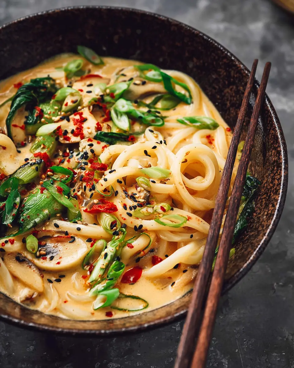 In just 15 minutes, you can create a mouthwatering bowl of creamy miso udon noodles that's packed with flavor and nutrients. This recipe is perfect for busy weeknights or a quick lunch. Don’t forget to experiment with toppings like crispy chili oil for that extra kick! Enjoy!