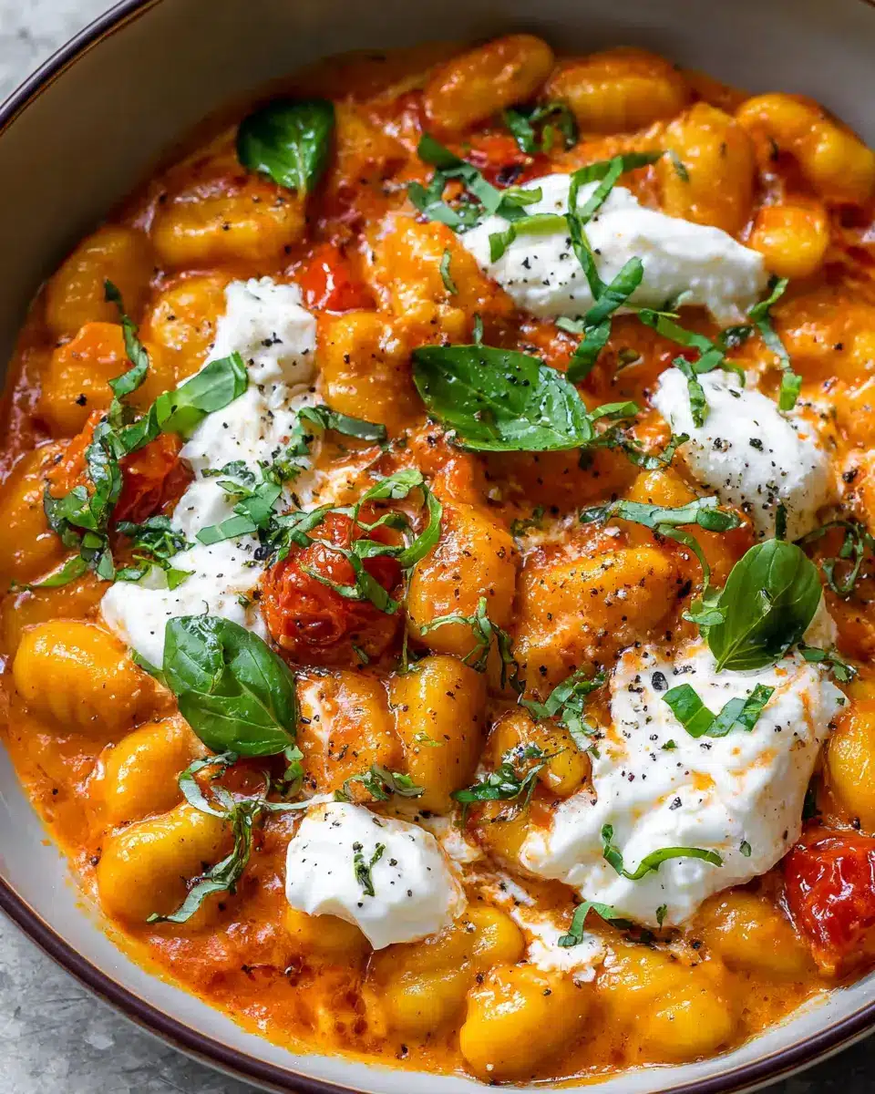30 Minute Creamy Tomato Gnocchi with Burrata