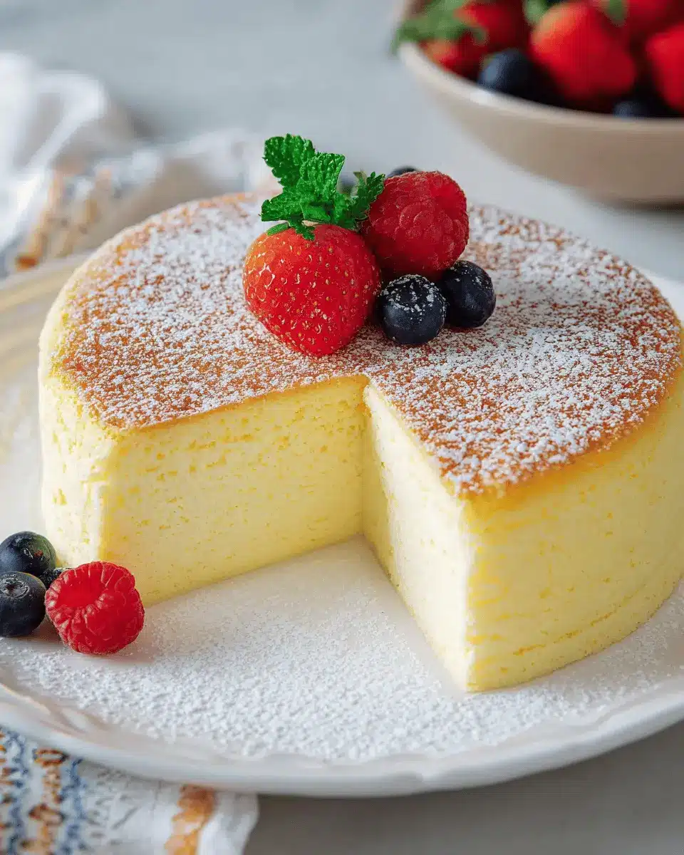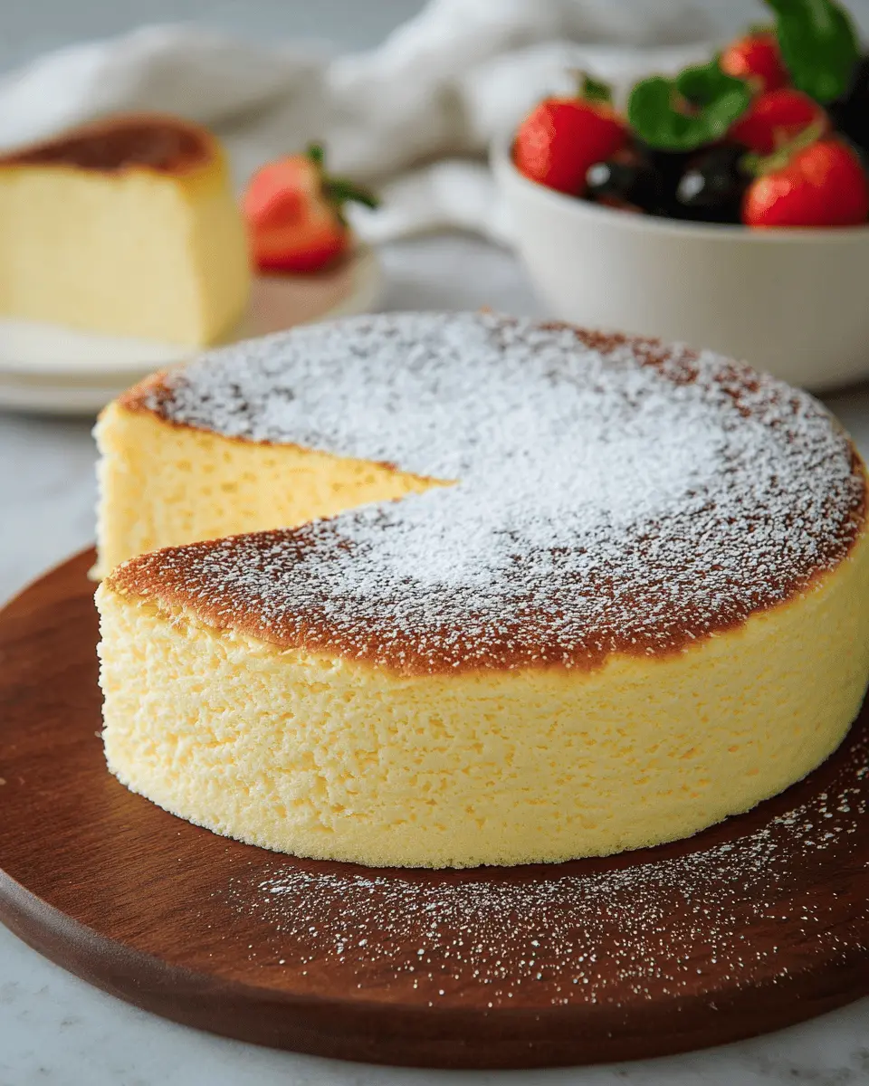 The Baked Japanese Cheesecake shines on its own, but pairing it with fresh fruits like strawberries or blueberries elevates the experience. A dusting of powdered sugar adds a charming touch, while drizzling honey or maple syrup can introduce delightful sweetness. For a refreshing twist, consider serving with a scoop of vanilla ice cream or a dollop of whipped cream.