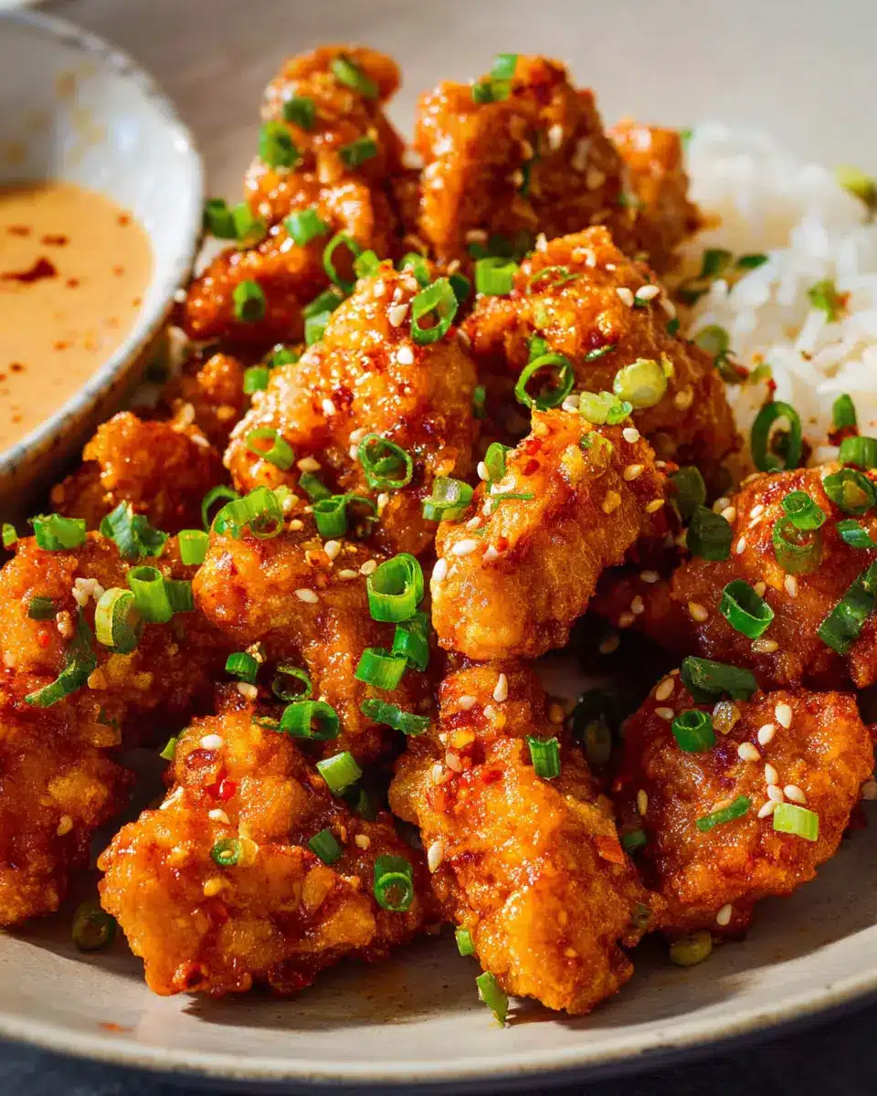 Looking for a fruity spin on the classic? Try adding spicy mango! Simply blend ripe mango with a splash of lime juice and a bit more Sriracha to elevate your sauce. The sweet and spicy mix complements the crispy chicken perfectly, adding a refreshing touch. Imagine the vibrant colors and flavors on your plate! For a flavorful enhancement, consider topping it off with diced fresh mango for added texture.