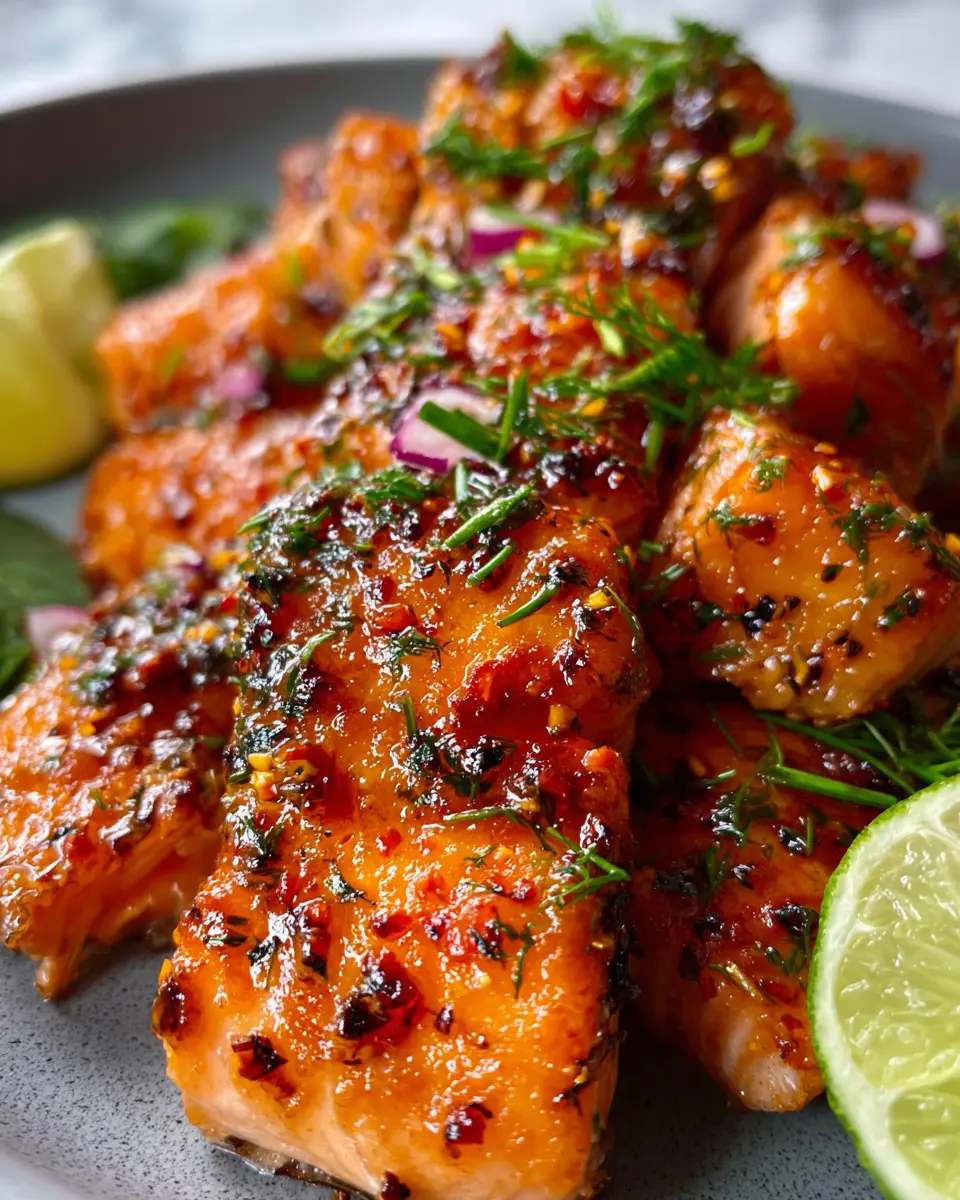 Now comes the exciting part: plating your Bang Bang Salmon. Arrange the hot salmon bites on a serving platter. Feel free to drizzle the prepared Bang Bang Sauce on top or serve it on the side for dipping. Garnish with lime wedges or fresh herbs for a pop of color. This dish pairs wonderfully with rice or a fresh salad—perfect for impressing guests or enjoying a satisfying solo meal.