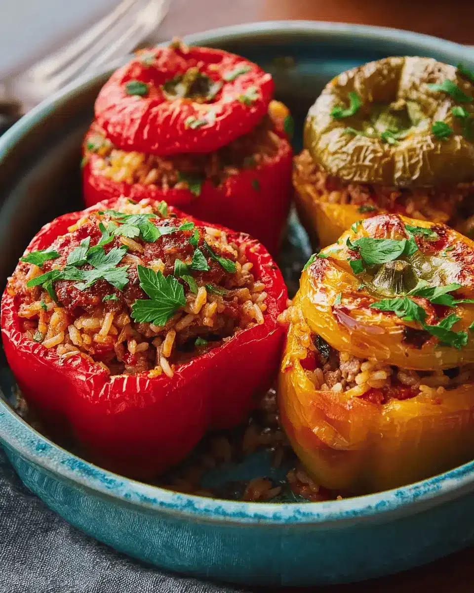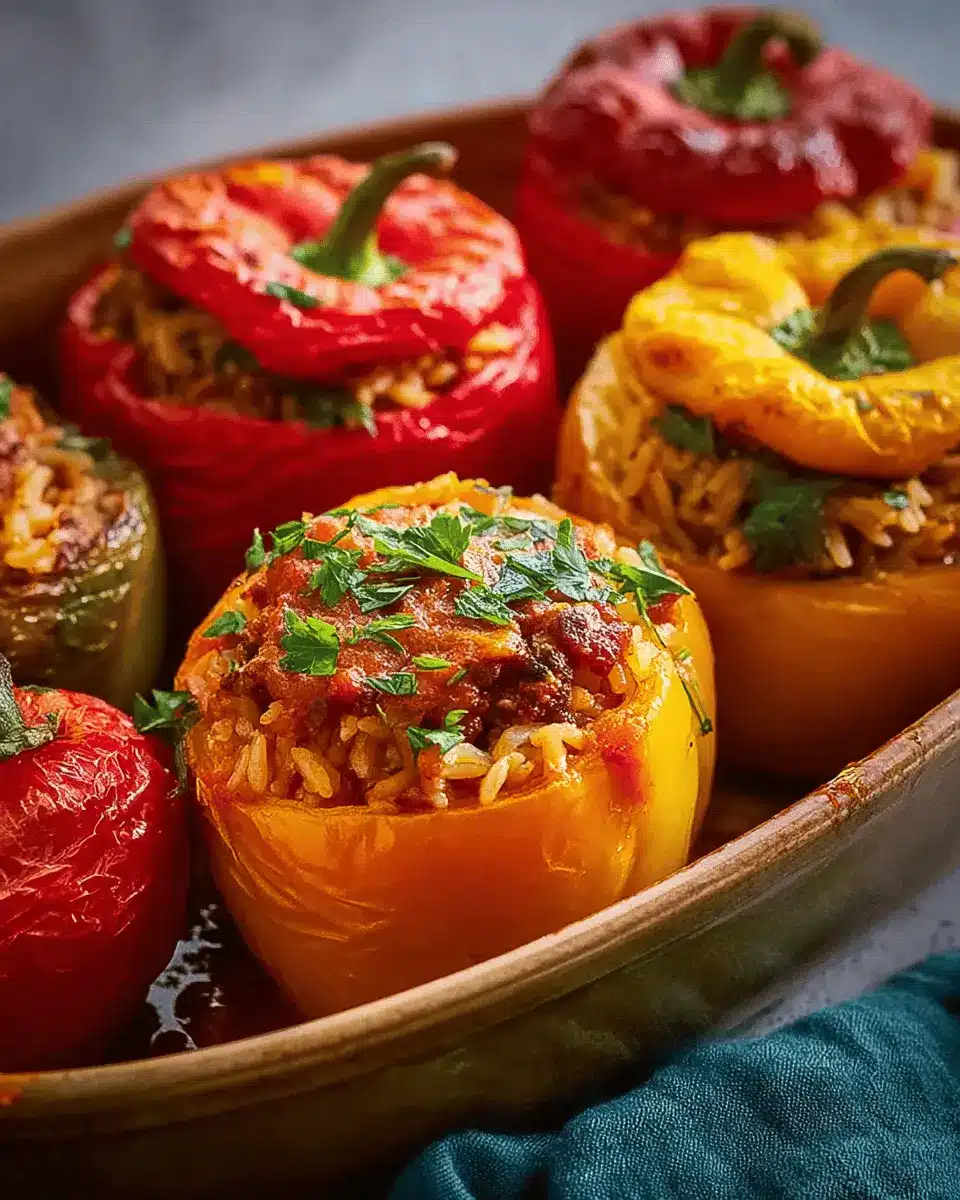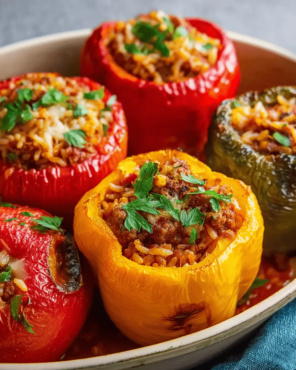 Presentation matters just as much as taste! Try slicing the bell peppers in half for a more elegant dish, showcasing the vibrant filling. Plating them on a large platter garnished with fresh herbs like cilantro or parsley can add a pop of color. Alternatively, serve your beef and rice stuffed bell peppers in individual ramekins for an intimate dining experience.