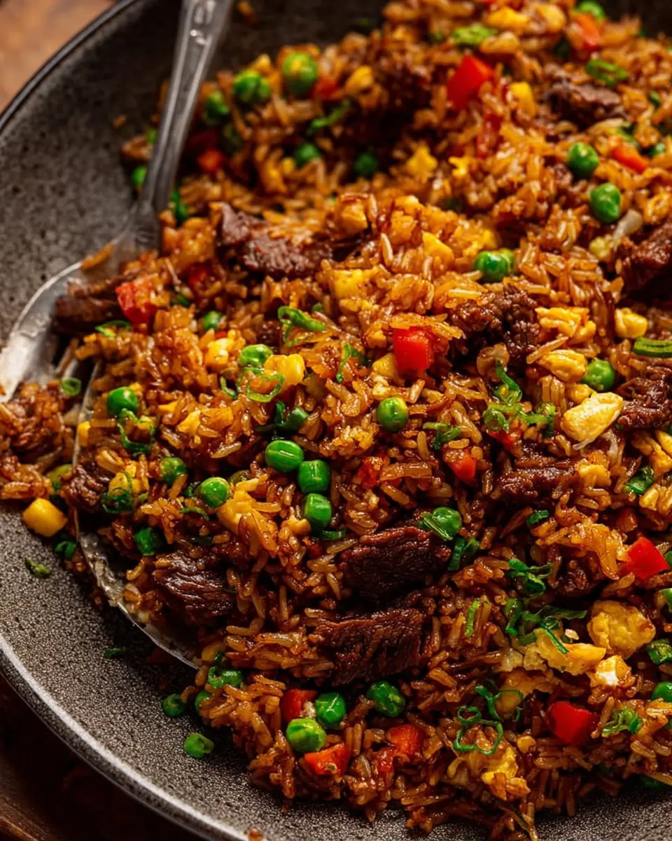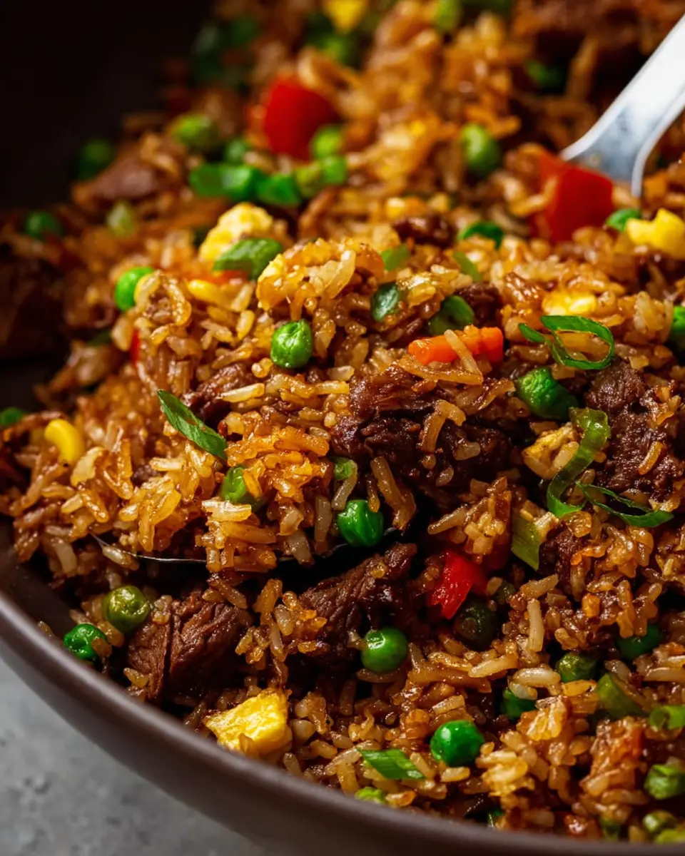 Elevate your presentation by serving beef fried rice in hollowed-out bell peppers or avocado halves for a colorful twist. Alternatively, consider creating a rice bowl topped with a fried egg, a sprinkle of sesame seeds, and chopped herbs for added visual appeal. Don't forget to garnish with fresh green onions for that extra pop!