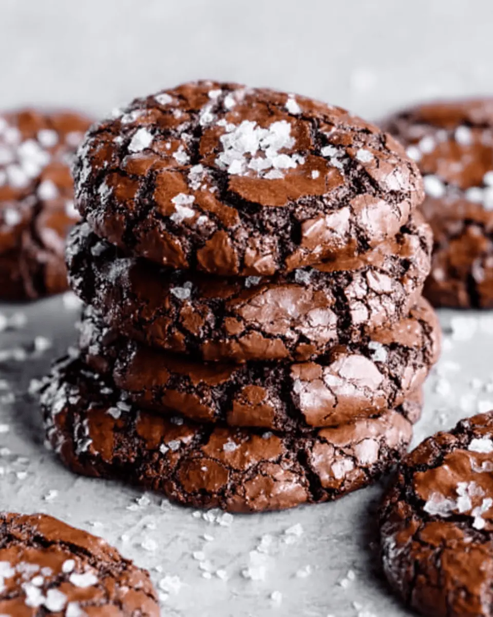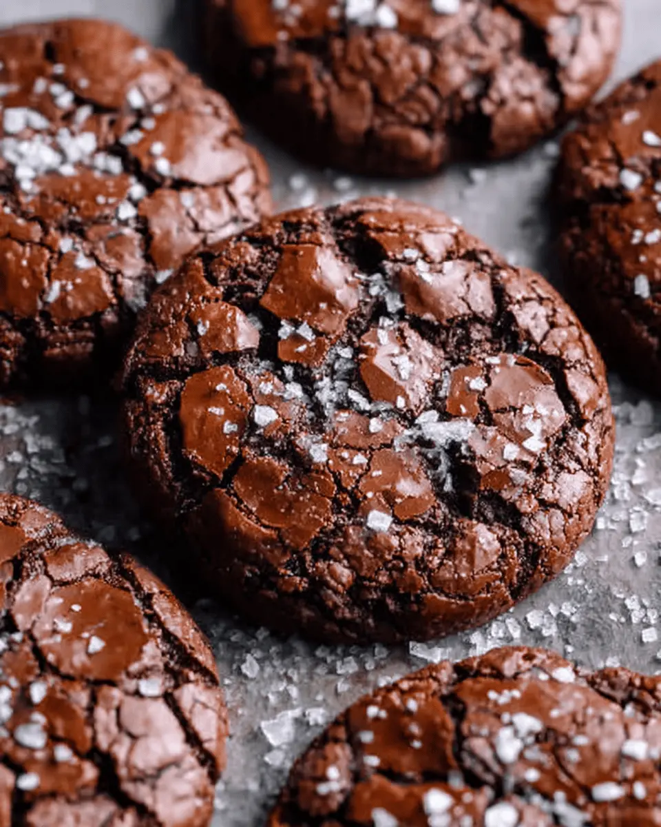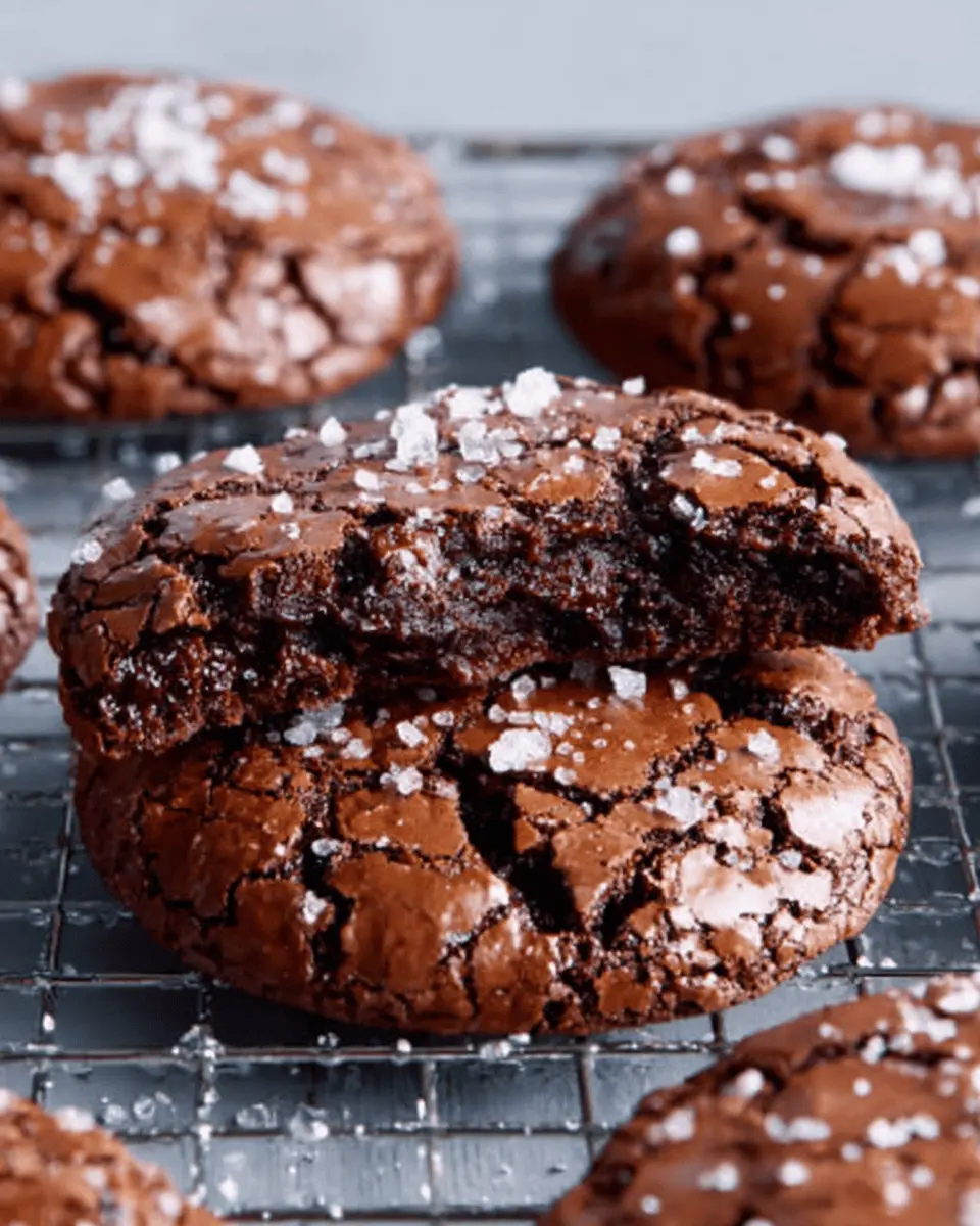 Slide your baking sheets into the oven and bake for 12 to 14 minutes, rotating halfway through. Keep an eye on them; you want the tops to look shiny and crackled. Once they’re done, sprinkle a touch of flaky sea salt over the warm cookies for that perfect sweet and savory bite.
