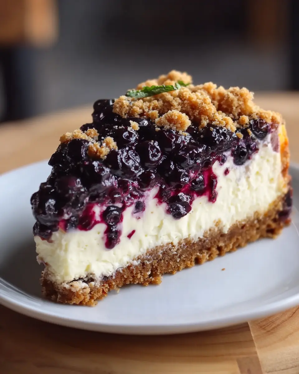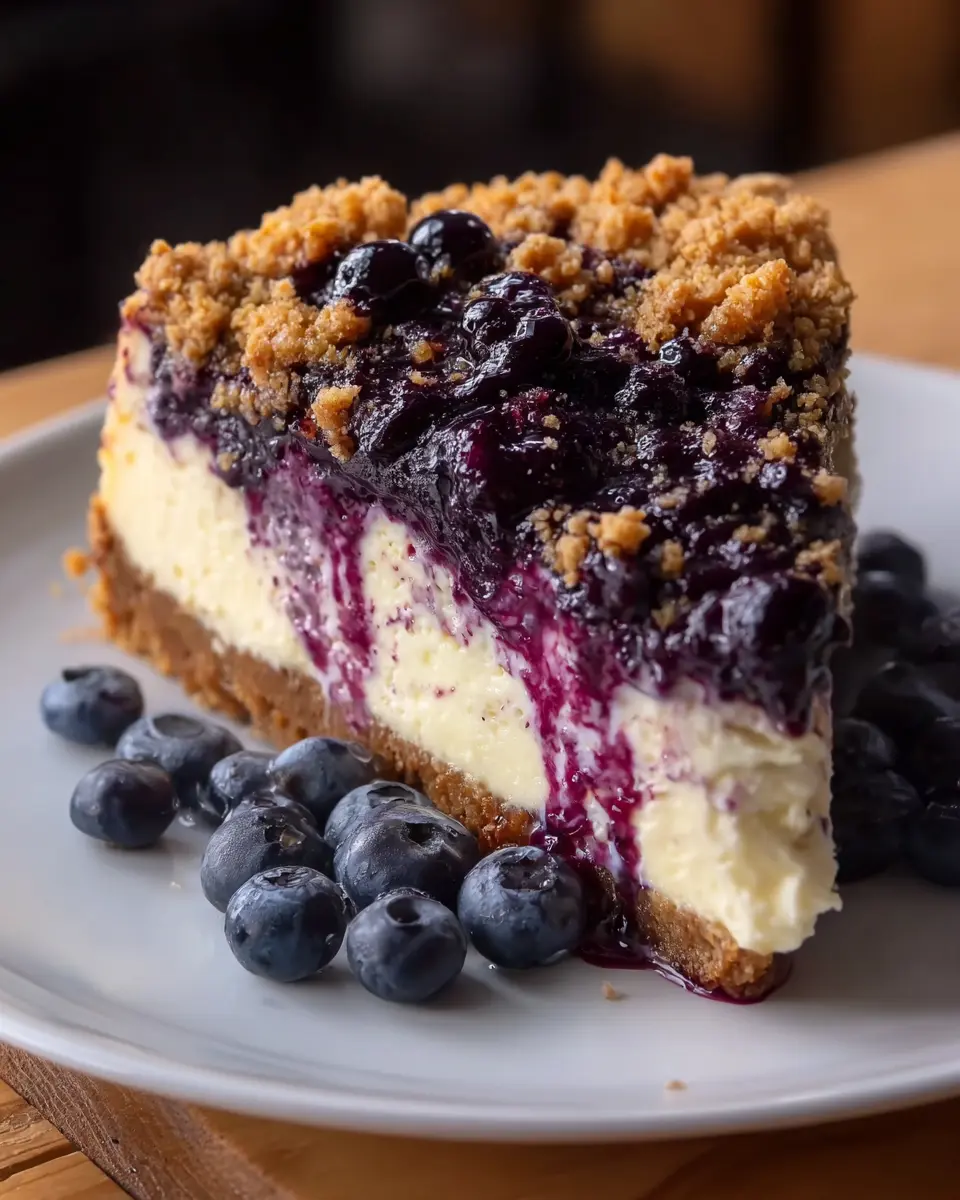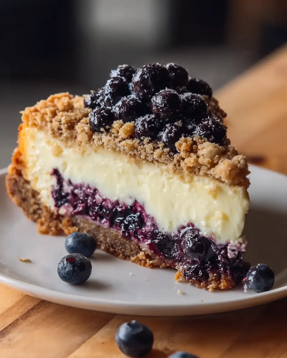 Presentation is key! Serve your cheesecake on a lovely cake stand, and garnish with a sprinkle of extra crumble topping and a handful of fresh blueberries. For a fun twist, create individual portions in mason jars, layering cheesecake and toppings for a charming dessert that’s easy to share. Adding edible flowers or mint leaves as a finishing touch can also make your blueberry crumble cheesecake pop visually and appeal to your guests.
