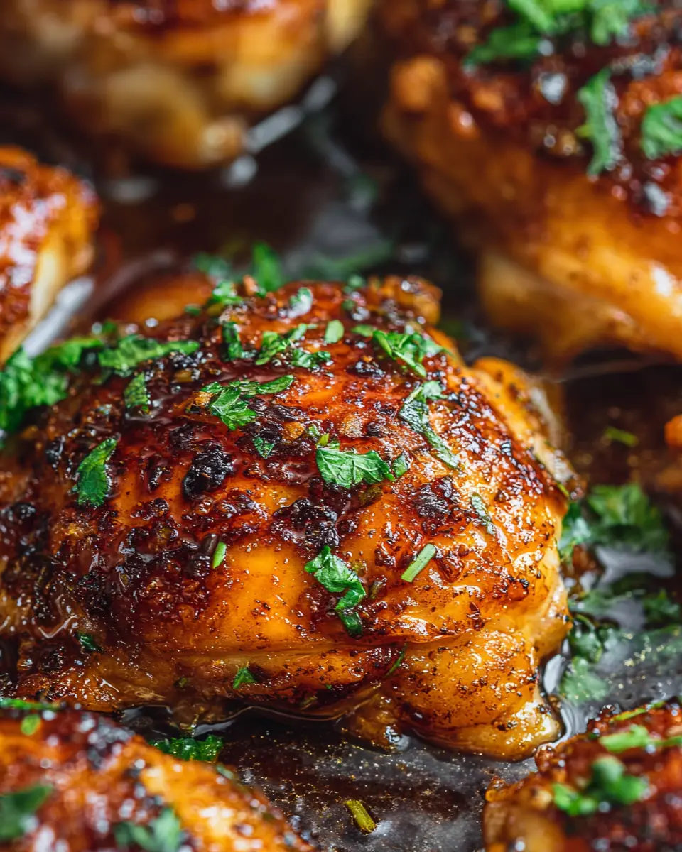 Time to let the oven work its magic! Place your casserole dish in the preheated oven and bake it uncovered for about 35 to 40 minutes. Here’s a helpful tip: halfway through baking, every 10 minutes, open the oven and use a spoon to baste the chicken with some of the sauce. This step helps lock in moisture and flavor, giving you beautifully glazed chicken thighs.
