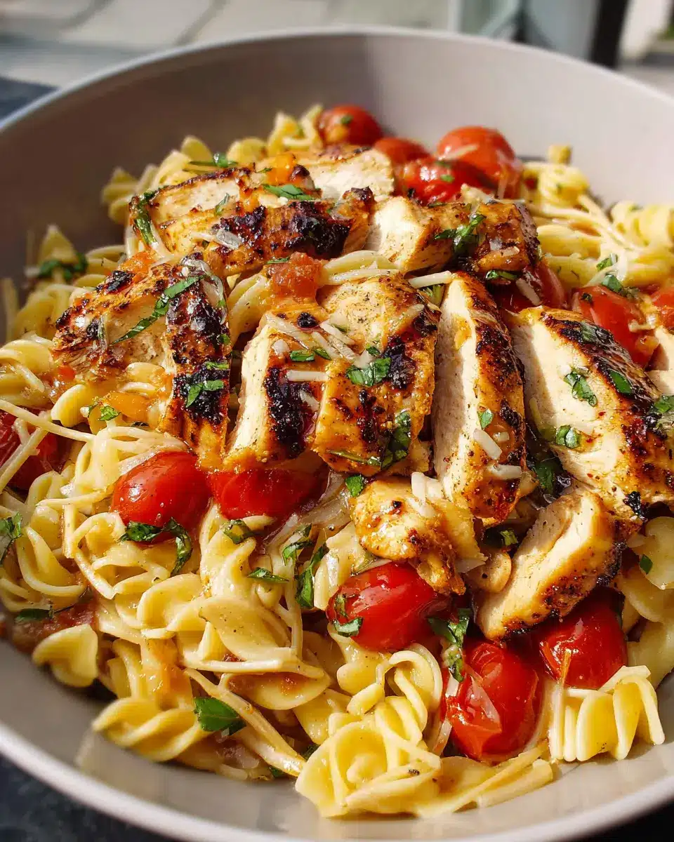 In summary, the Bruschetta Chicken Pasta Recipe is a perfect blend of fresh flavors and hearty ingredients. Ideal for busy weeknights or casual gatherings, it’s simple to make and absolutely delicious. Give it a try, and enjoy a comforting meal that will impress family and friends alike!