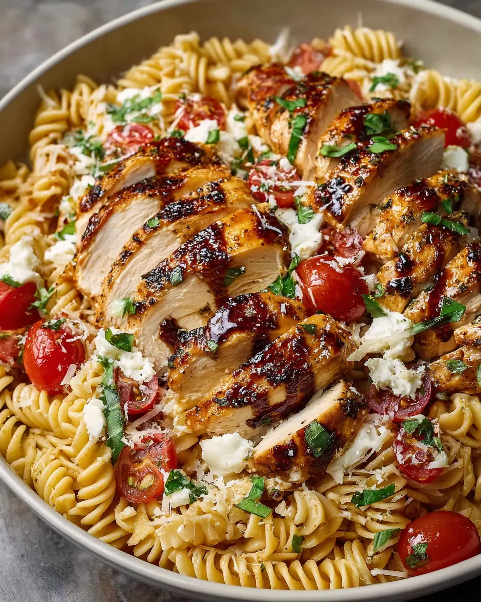 Step-by-step preparation of Bruschetta Chicken Pasta