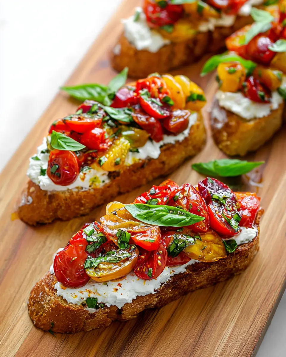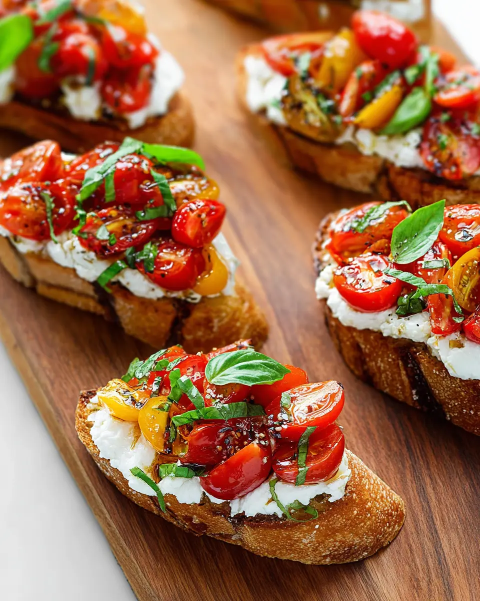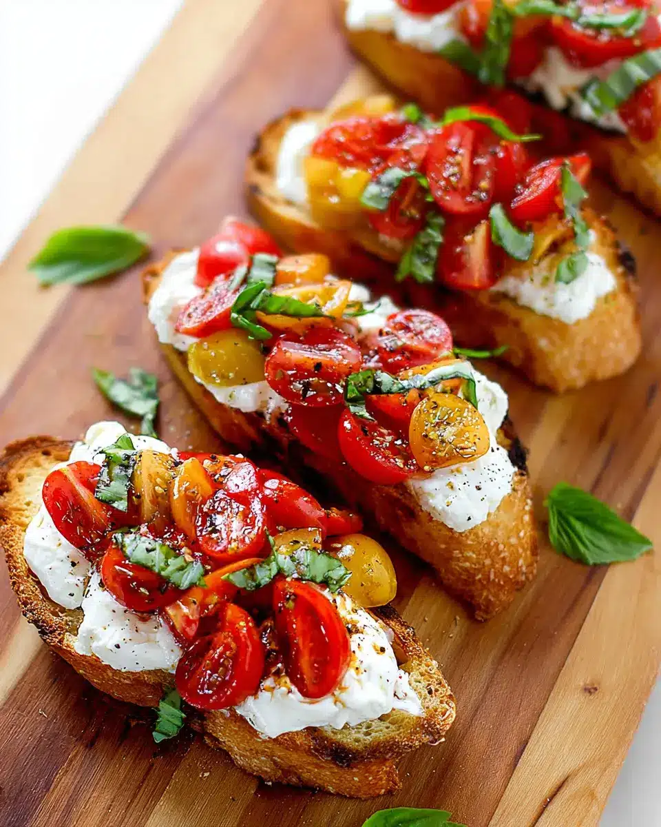 Absolutely! You can prep the tomato topping a few hours in advance. Just store it in the fridge so the flavors can meld. However, to keep your bruschetta crispy, wait until just before serving to assemble the toast with the burrata.