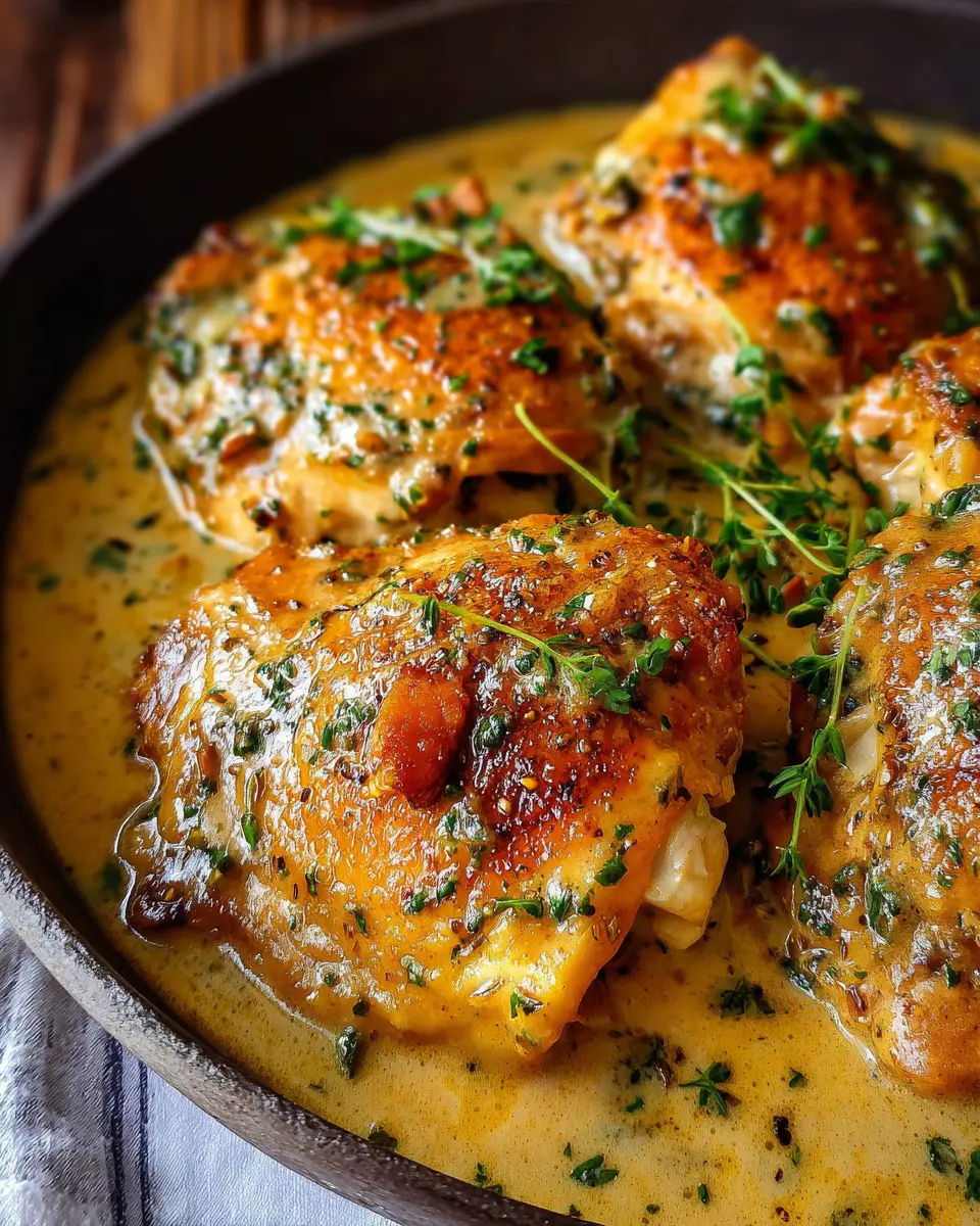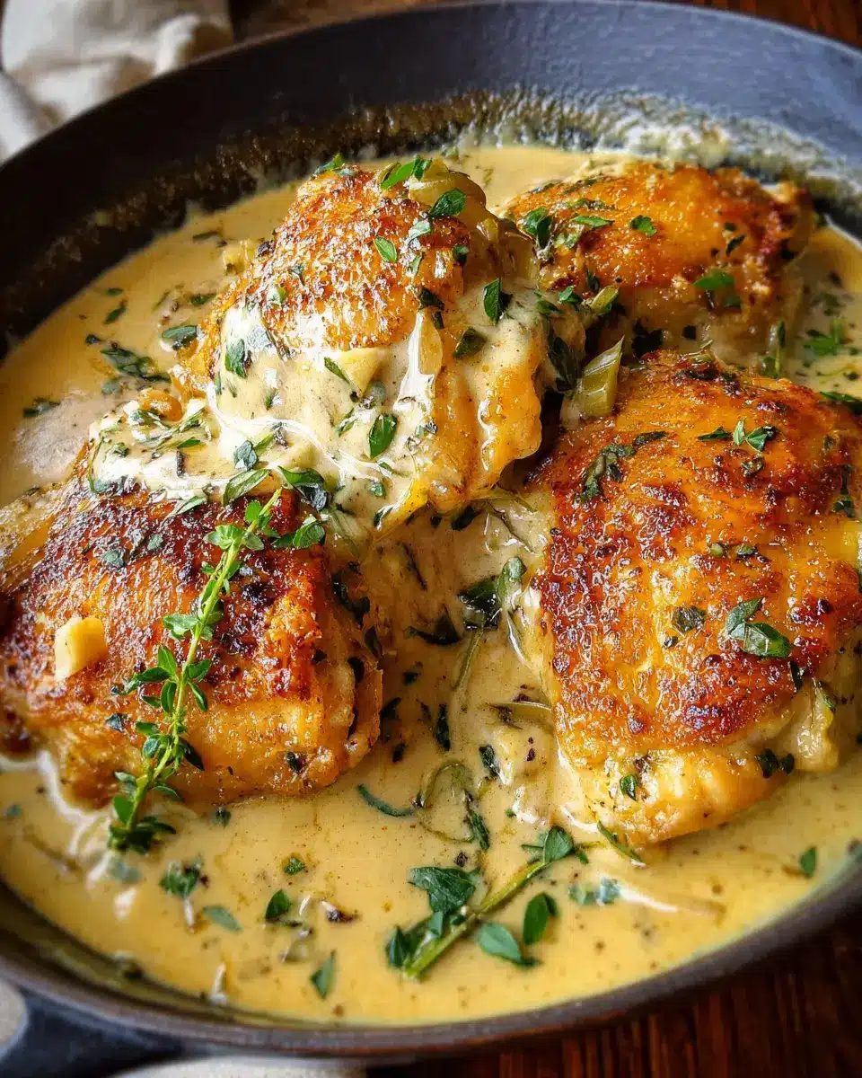 Nestle the partially cooked chicken thighs back into the skillet, ensuring they’re skin-side up, and place the entire skillet in your preheated 375°F oven. Bake uncovered for 30-35 minutes, until the chicken reaches 165°F internal temperature and the sauce reduces beautifully. The result? A deliciously creamy Chicken in White Wine Sauce that pairs perfectly with your favorite sides.
