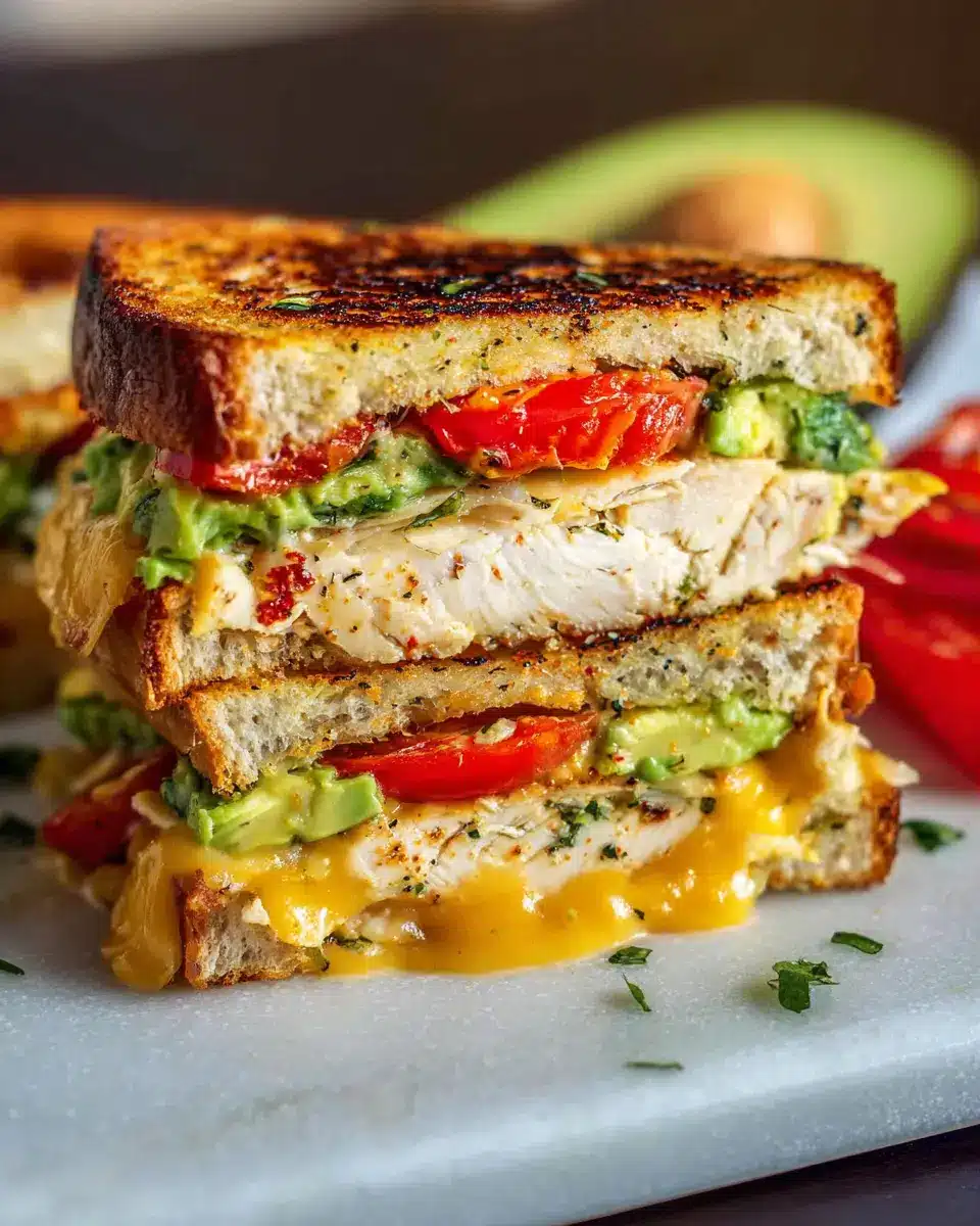 For those who love a bit of heat, try adding sliced jalapeños to your melt. Their crunchy texture and fiery flavor beautifully complement the smoky chicken and creamy avocado. You can even swap in a spicy chipotle sauce or add fresh chili flakes to kick things up a notch!