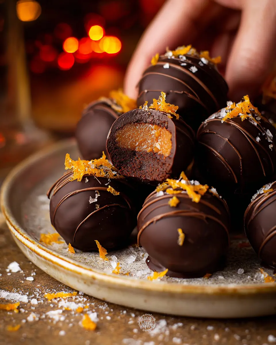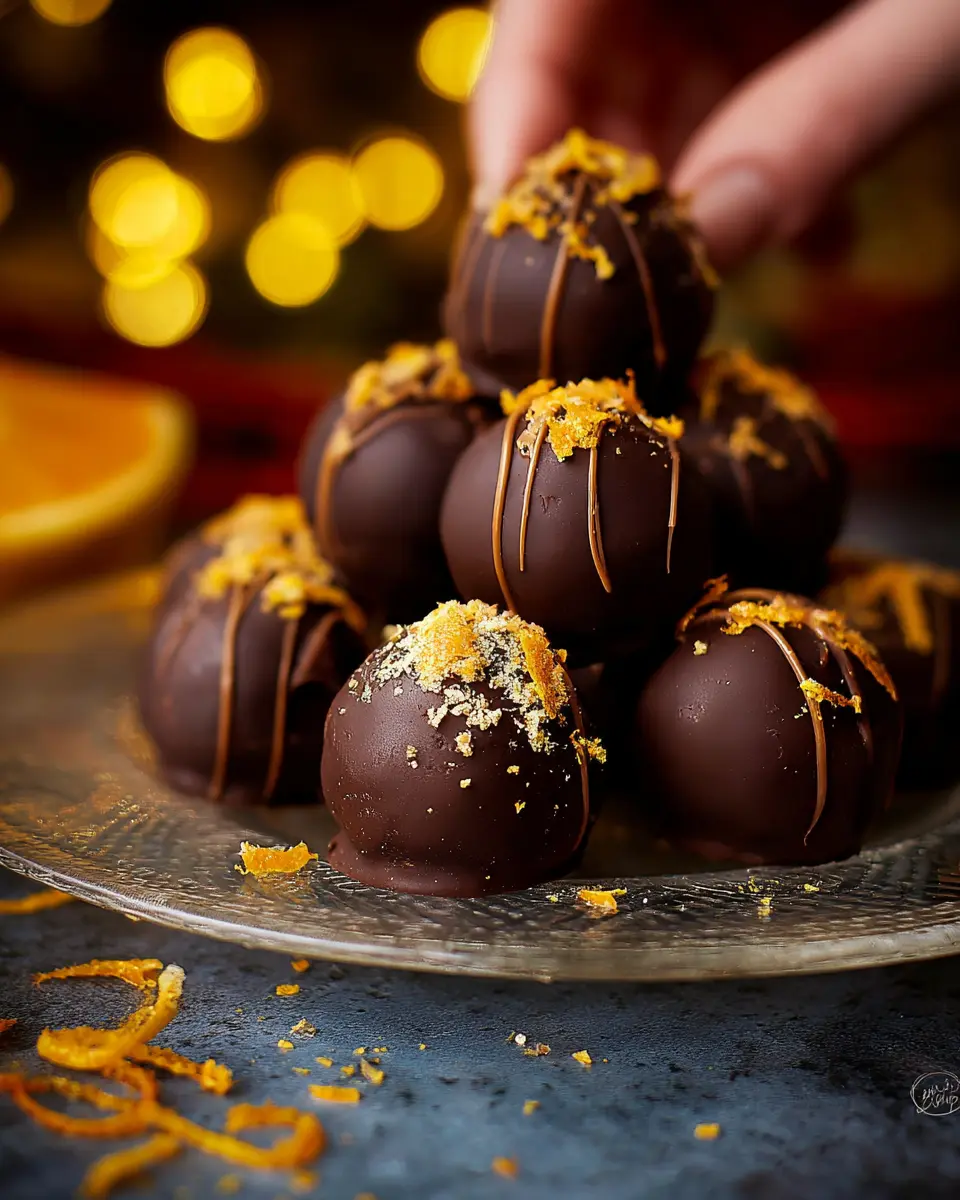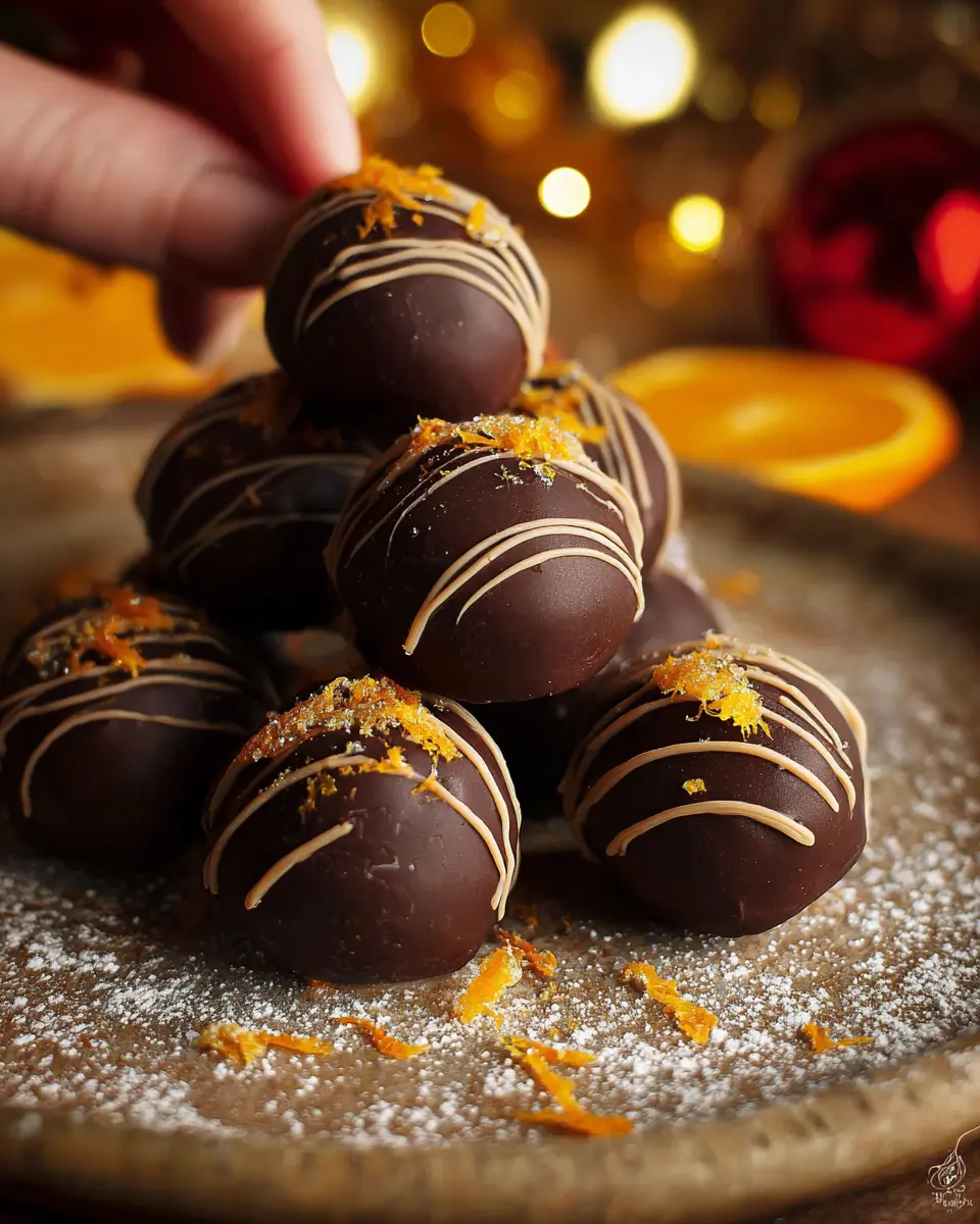 Festive Platter: Arrange your truffles on a beautiful serving platter alongside fresh orange slices and sprigs of mint for a pop of color.