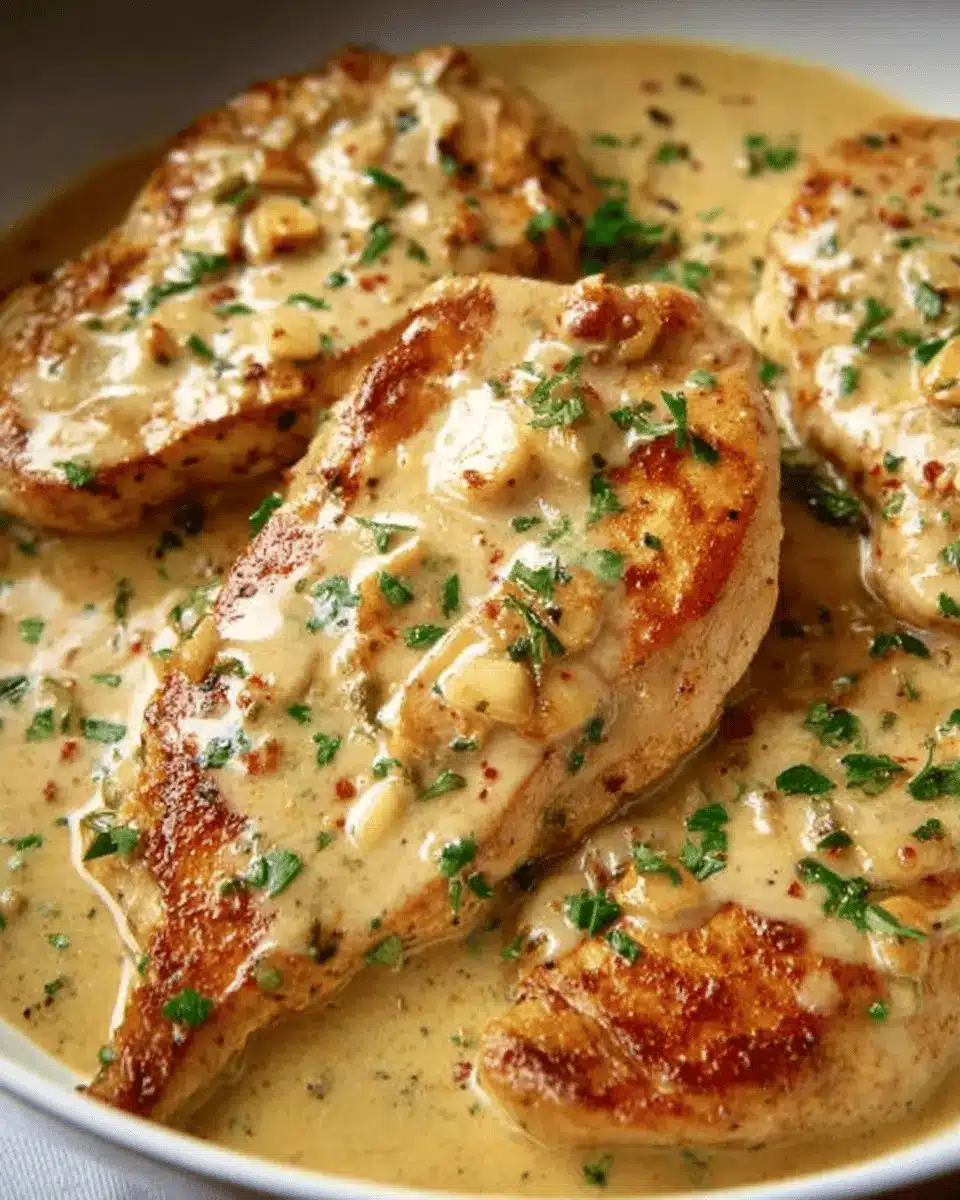 Finally, return your cooked chicken cutlets to the skillet. Spoon the creamy sauce generously over them, allowing the chicken to soak up that delectable flavor. Let it heat through for a couple of minutes before serving. You can top your dish with fresh chopped parsley for an added touch of color and freshness.