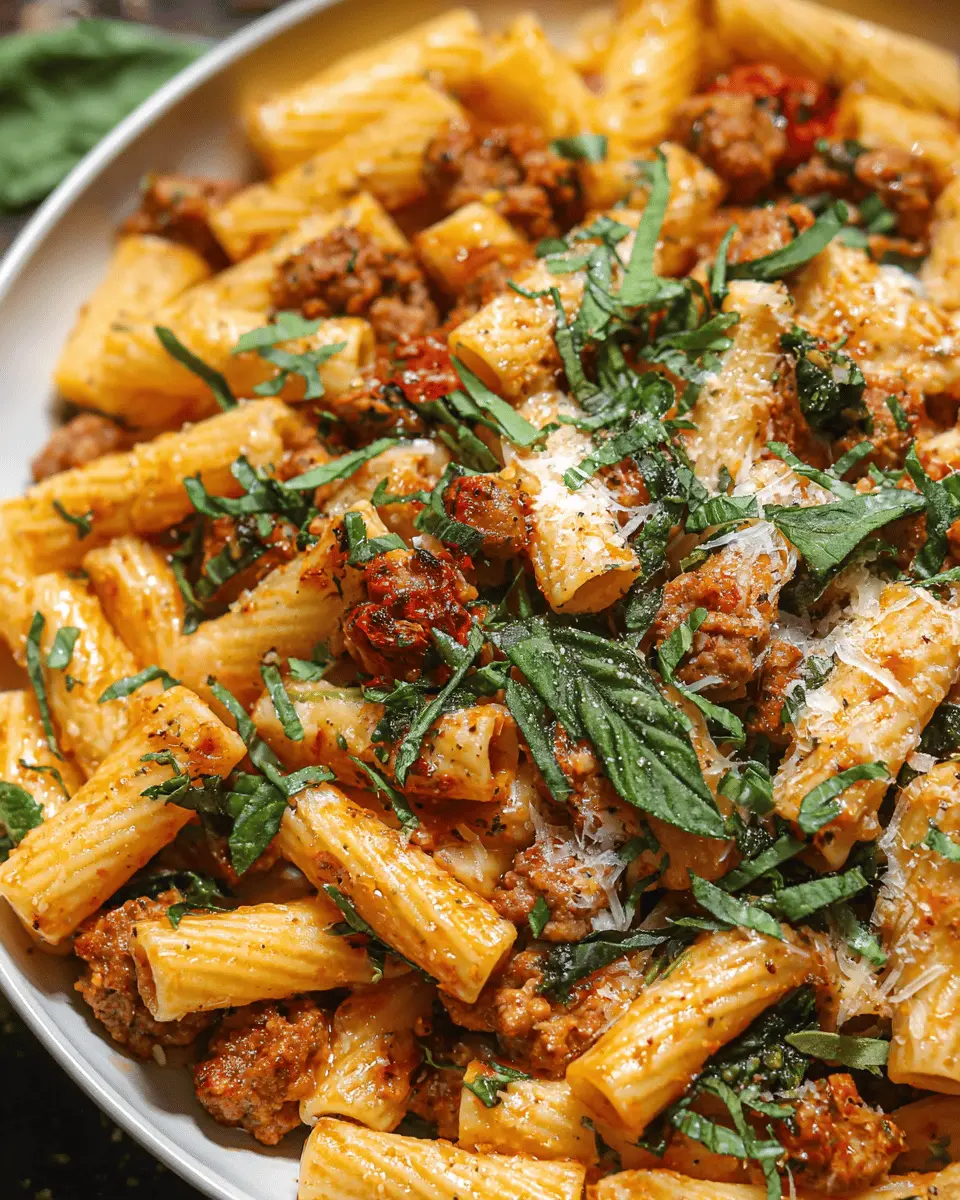 Don’t forget to season with salt, freshly ground pepper, and a sprinkle of red pepper flakes if you prefer a bit of spice. And just like that, your creamy sausage rigatoni is ready to serve! Enjoy it alongside a simple salad or crusty bread for a complete meal.