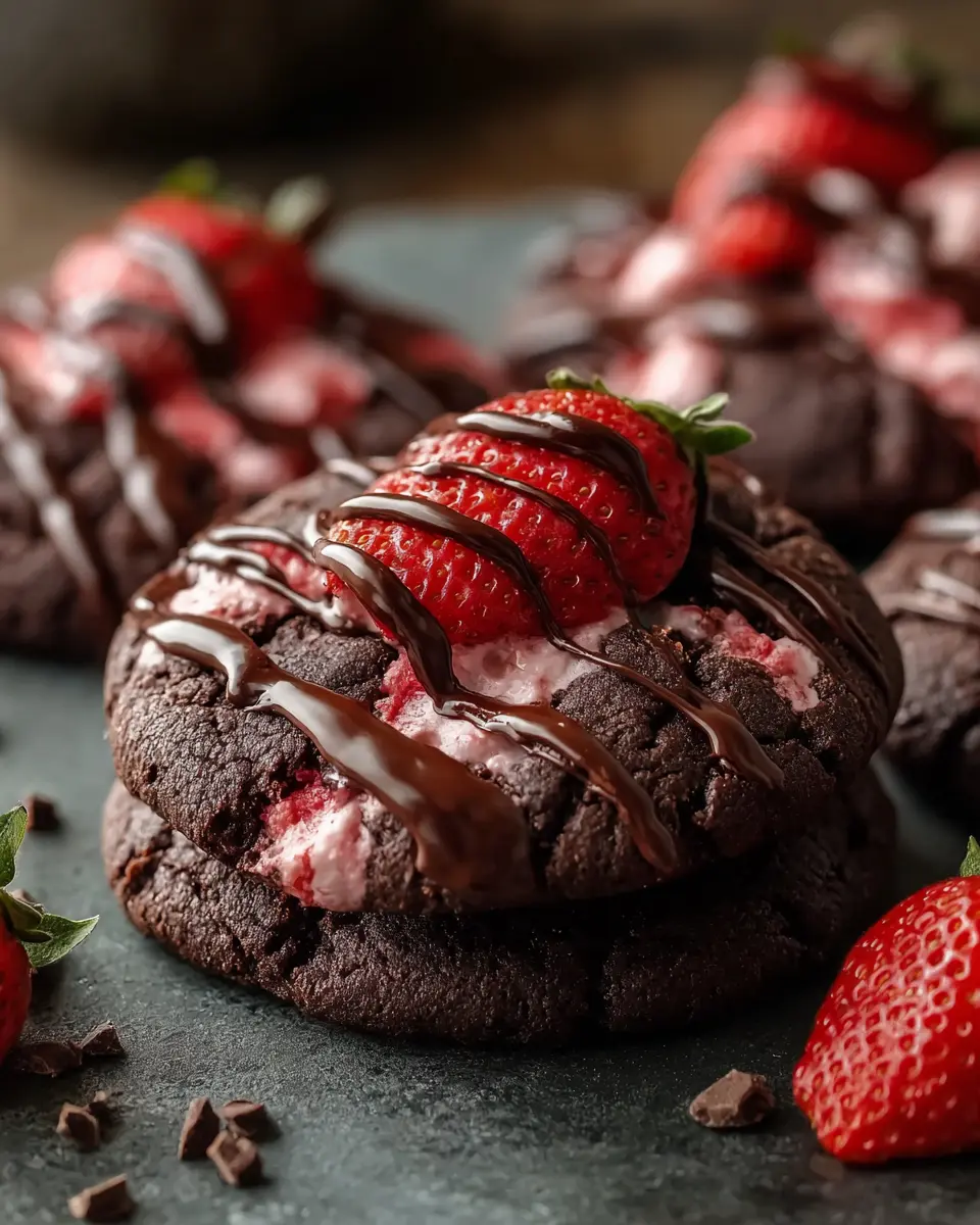 Decadent Crumbl Chocolate Strawberry Cookies