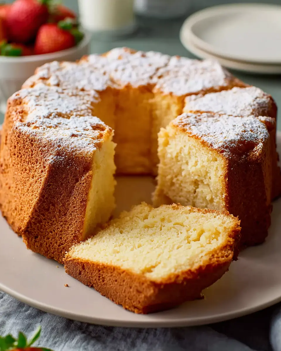 After removing the cake from the oven, let it cool in the pan for about 15 minutes before transferring it to a wire rack to cool completely. Once cool, you can dust it with powdered sugar for an elegant finish. Serve it plain or dress it up with fresh berries for a delightful treat.