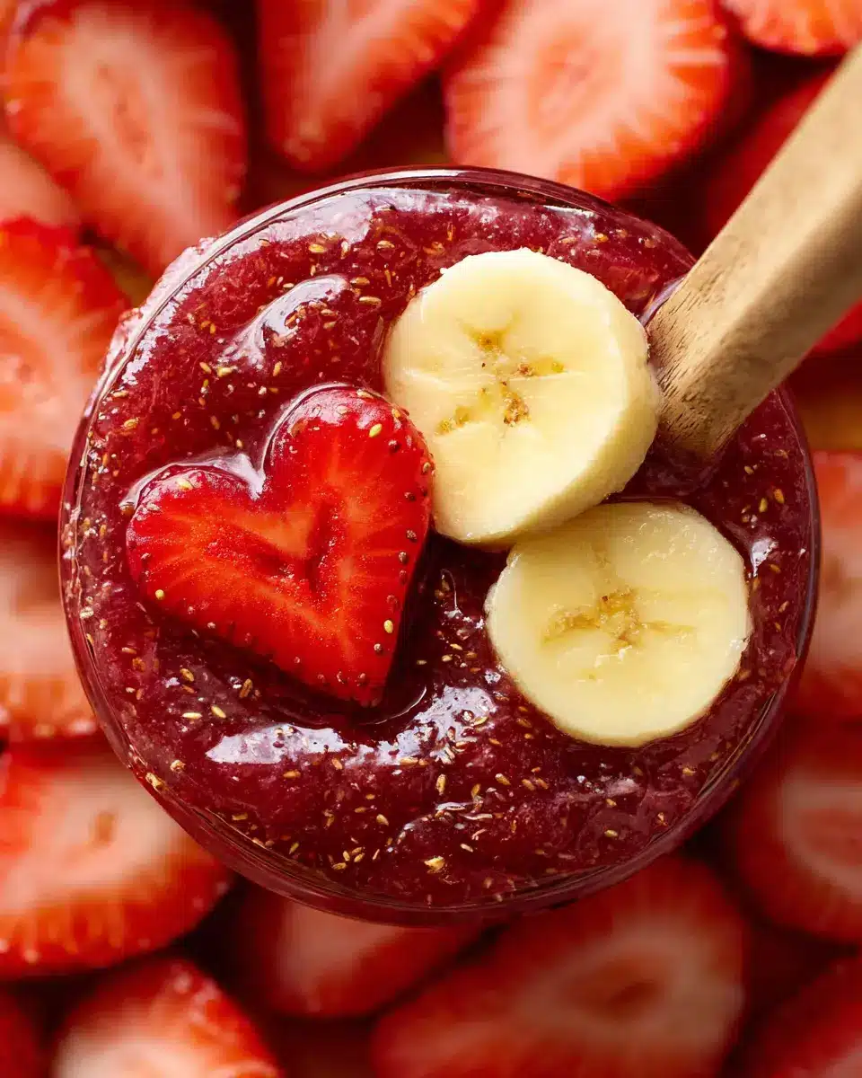 Elevate your breakfast game by adding easy strawberry banana jam as a topping for a bowl of yogurt or a stack of pancakes. The sweetness from the jam beautifully complements the creamy texture of Greek yogurt, making it a perfect, nutritious option for busy mornings. Or try it drizzled over fluffy pancakes with a sprinkle of chia seeds for added crunch and health benefits. It’s a simple way to make any meal feel special!