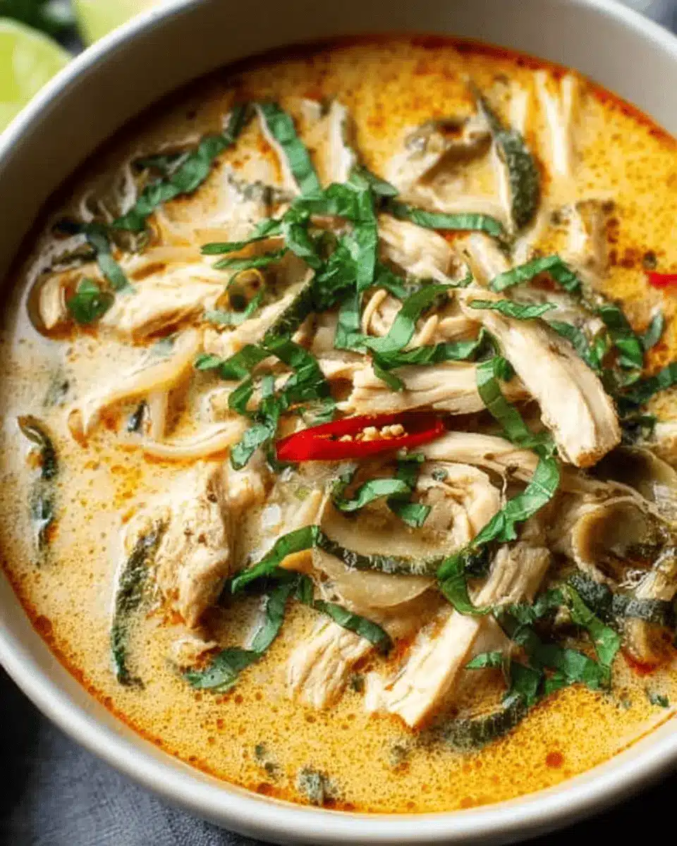 Elevate your easy Thai chicken curry soup by adding spices like cumin or coriander. A bit of fish sauce can also enhance the umami notes. Don’t forget to use fresh ingredients, especially herbs like cilantro and basil, which can transform the dish. If you’re looking for a spicy kick, consider slicing in some fresh chili or adding a splash of sriracha.