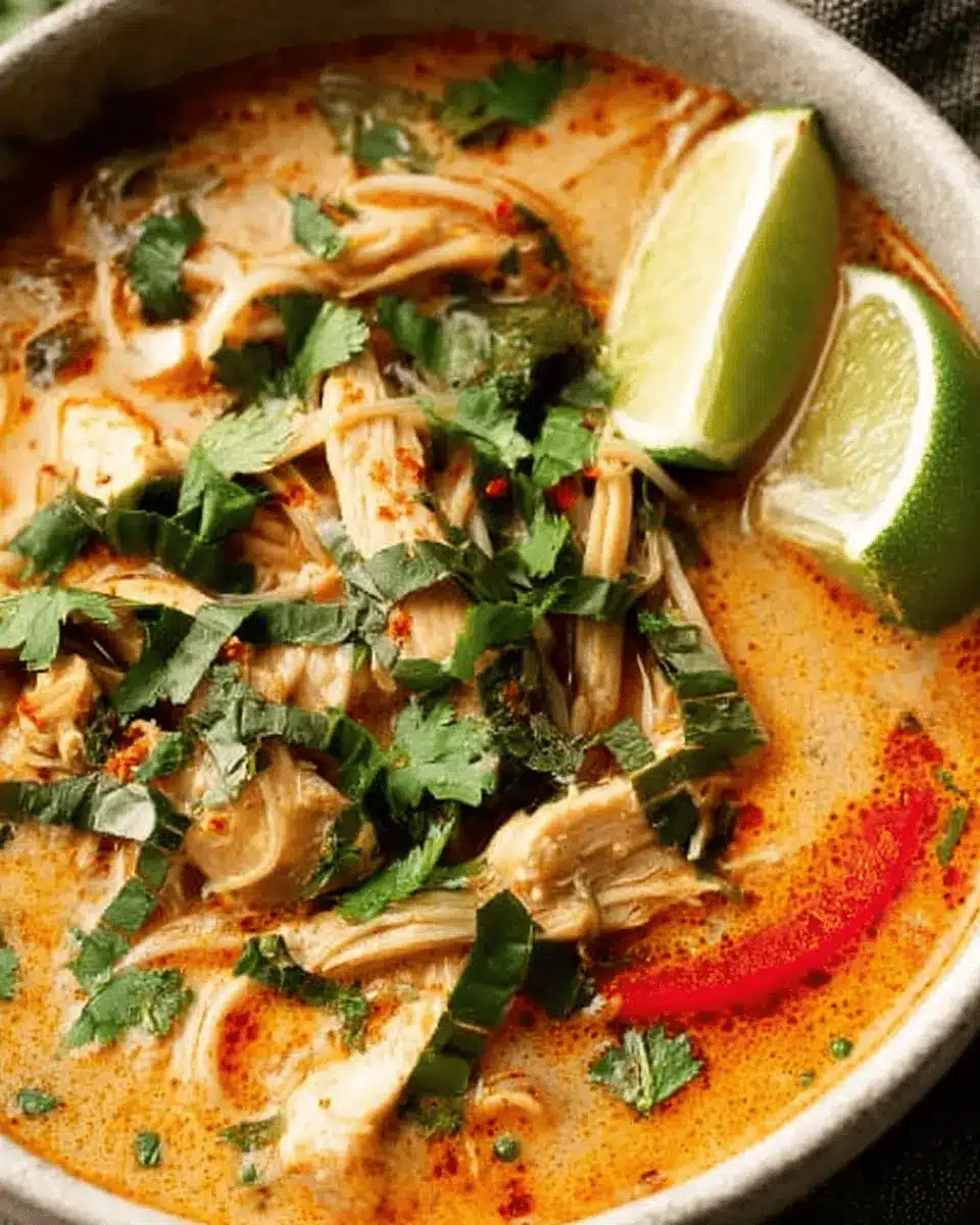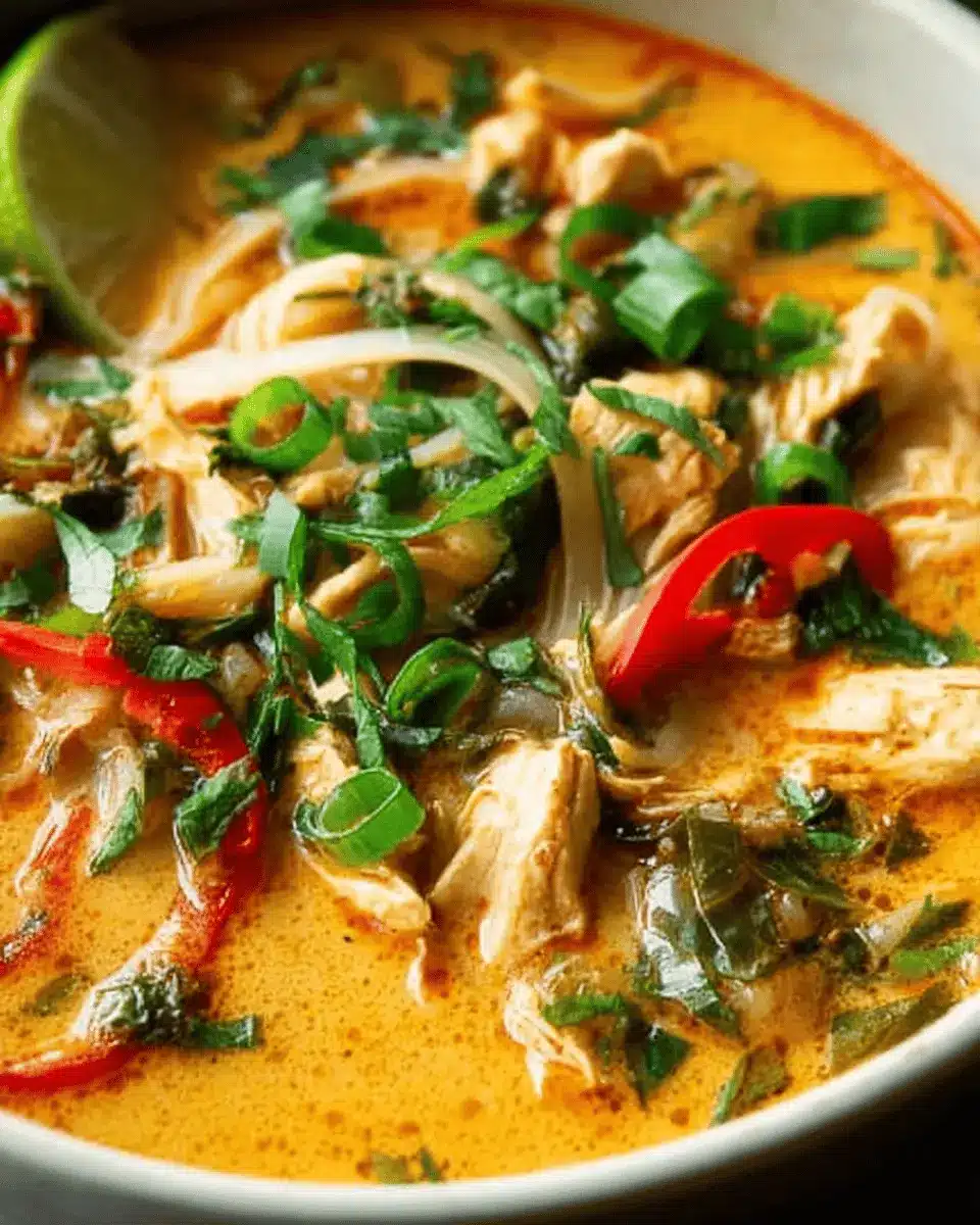 You could even add a swirl of coconut cream for a luxe finish. These little details will impress your dinner guests and make your easy Thai chicken curry soup a standout dish.