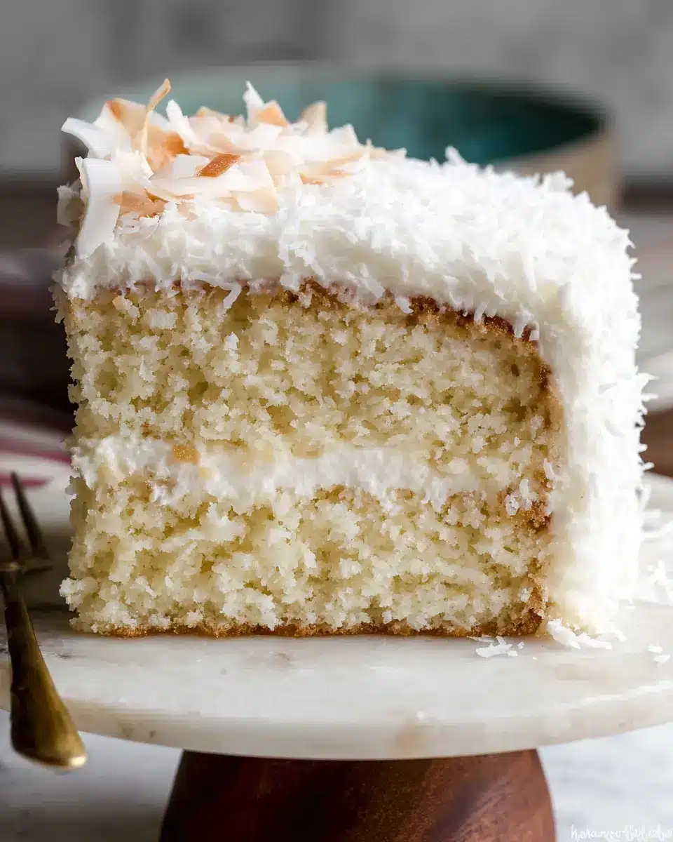 For a vibrant twist, incorporate the zest and juice of two limes into the cake batter. This zesty addition complements the coconut beautifully and elevates its tropical essence. Use a lime-infused syrup to brush over the cake layers before frosting to add moisture and flavor. Top with a light coconut-lime frosting to complete this refreshing take.