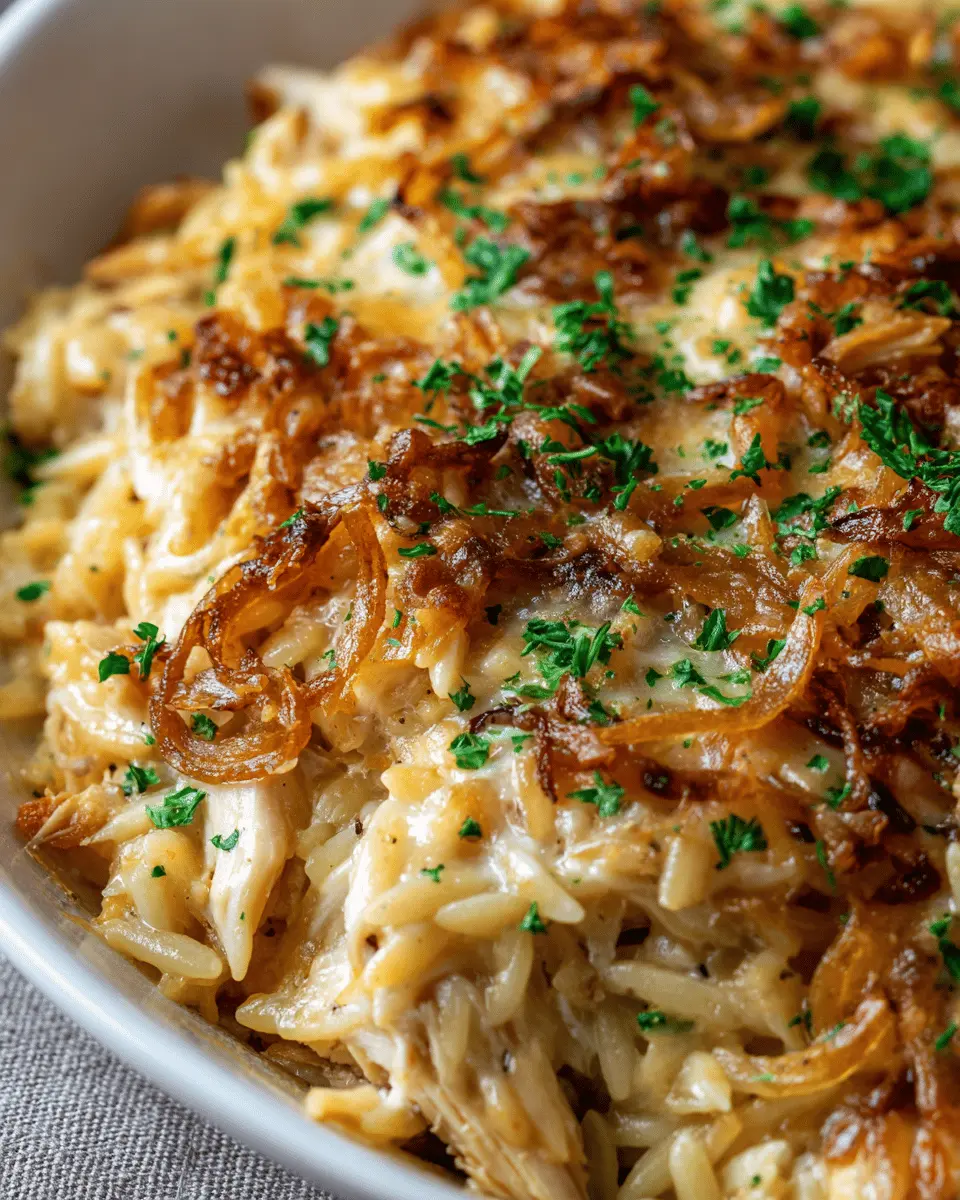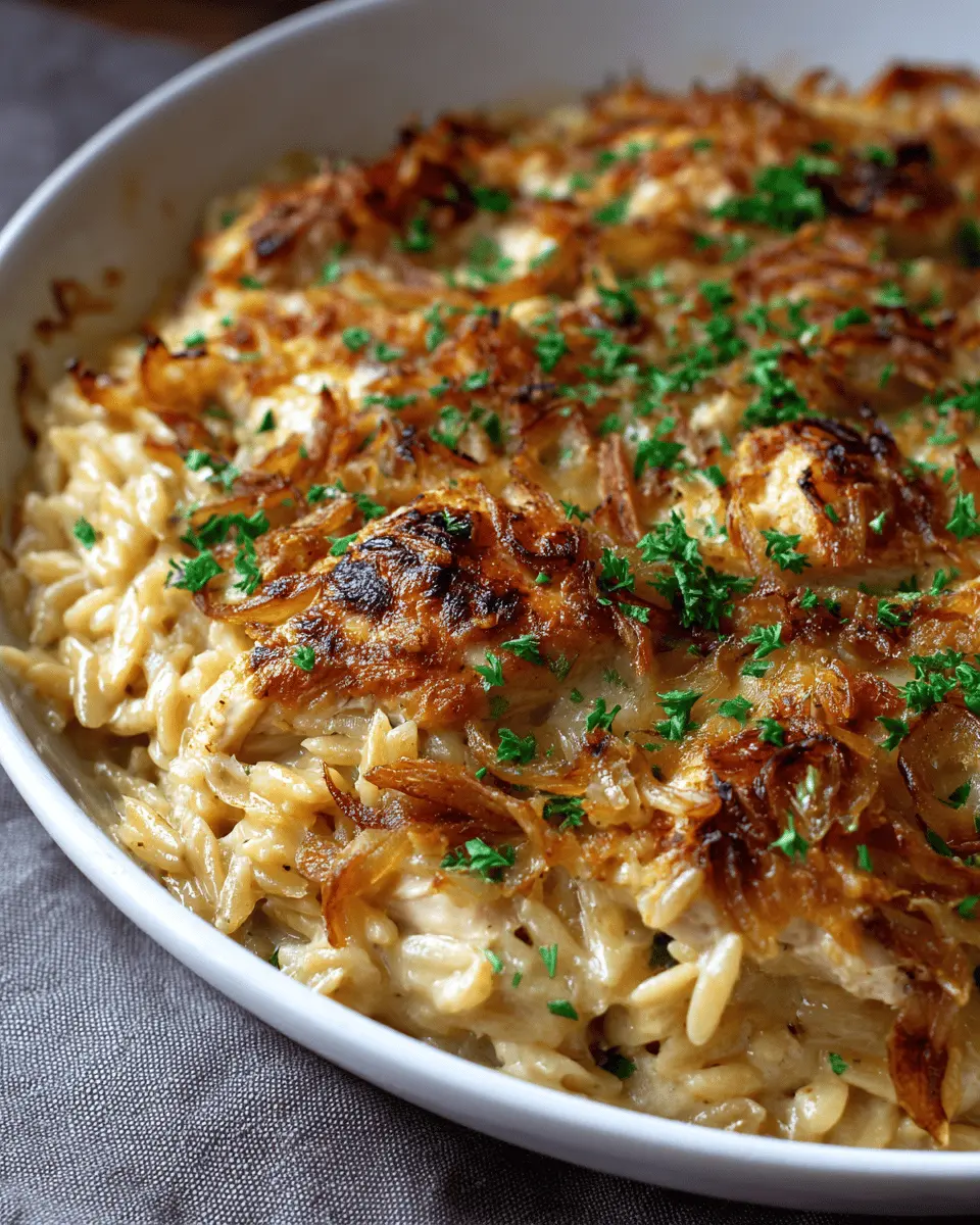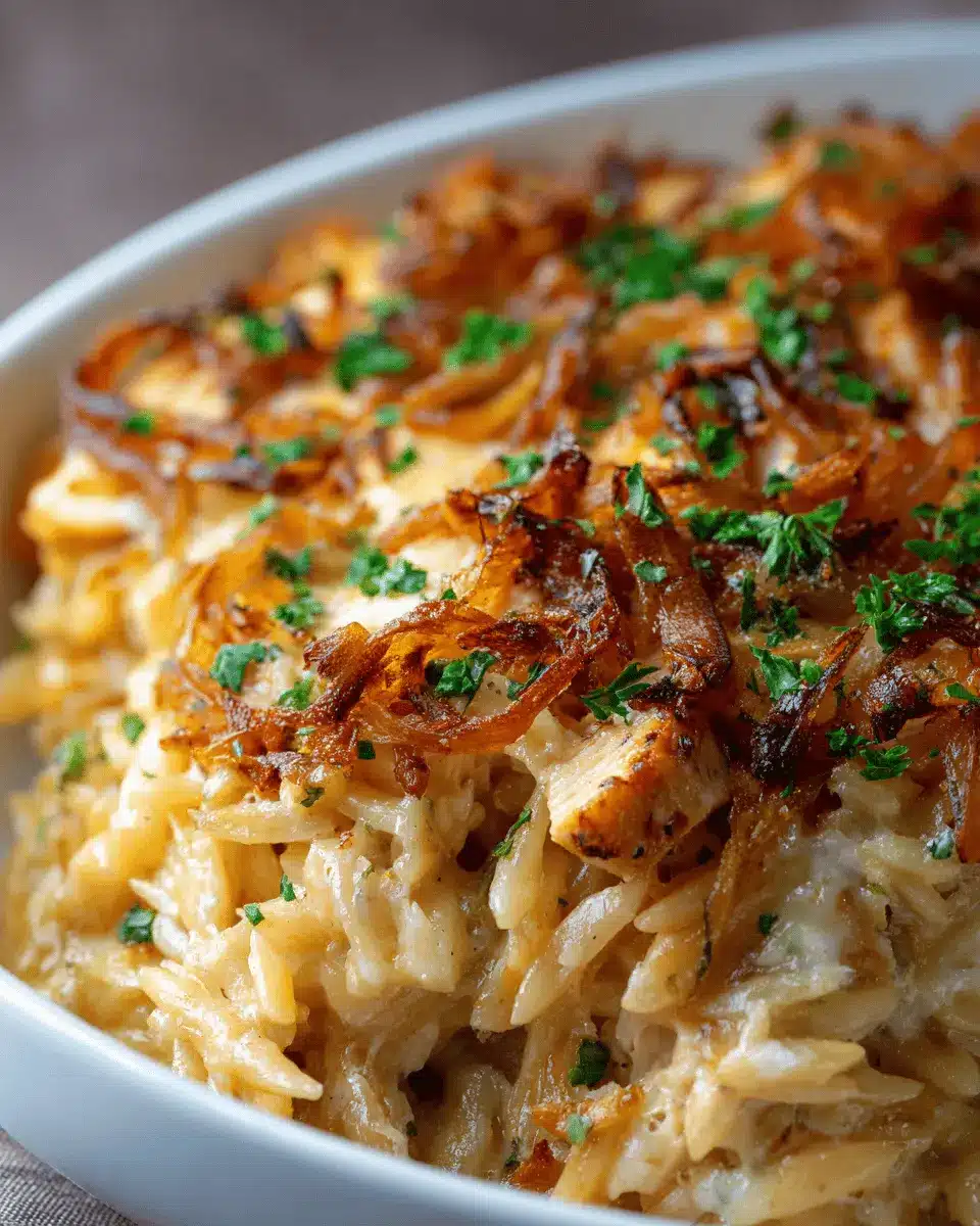 French Onion Chicken Orzo Casserole