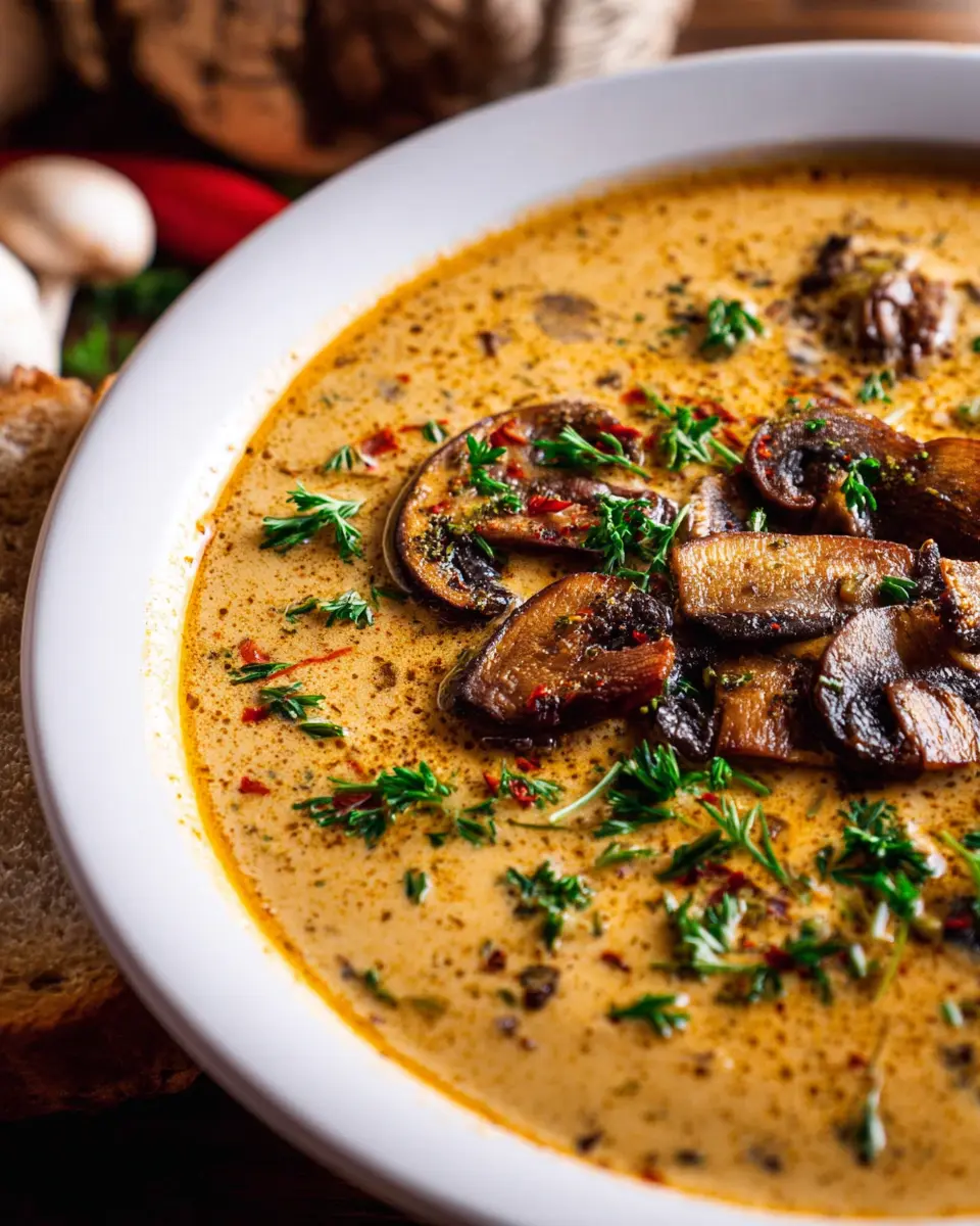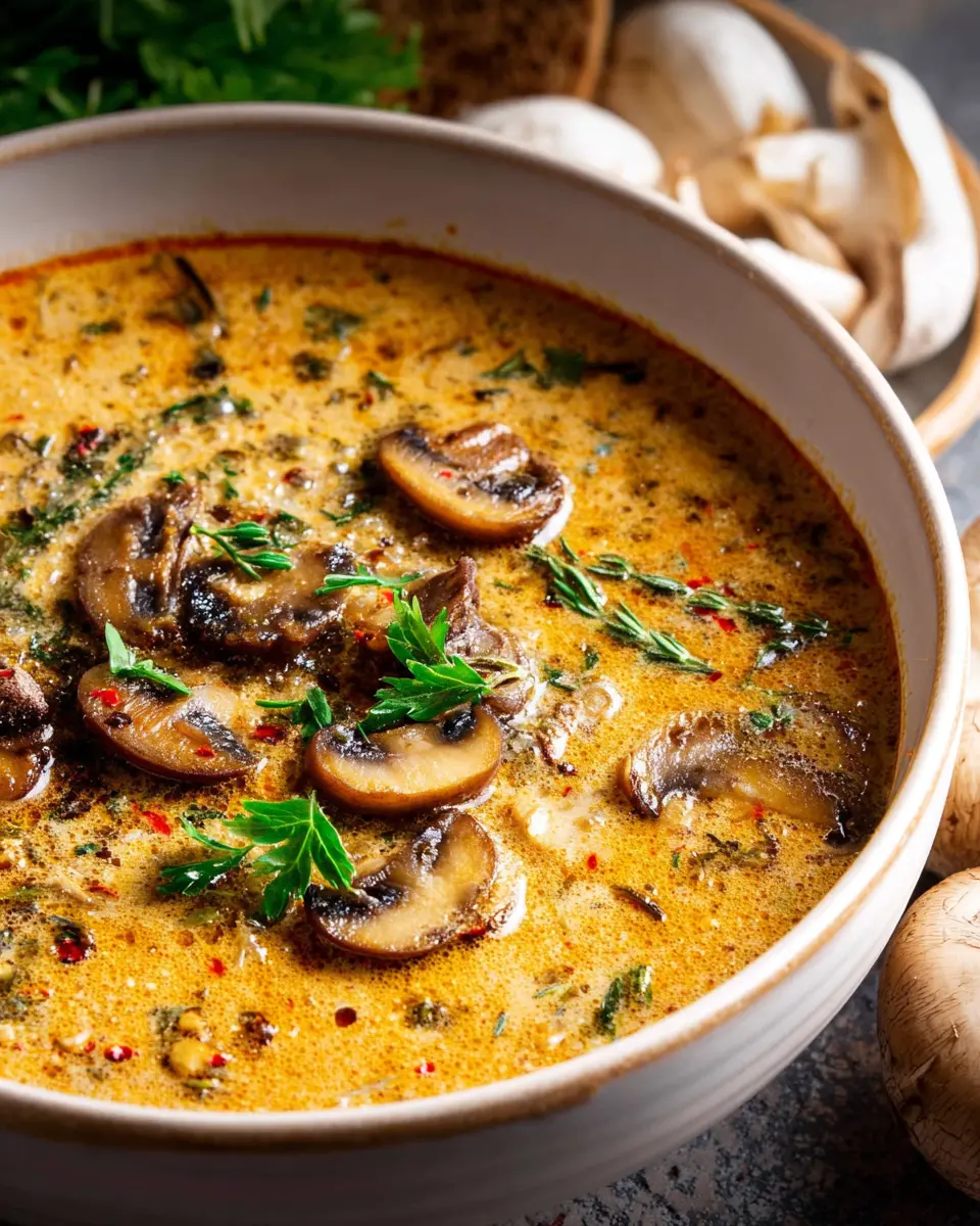 Looking for a comforting yet meatless option? You can easily craft a Vegetarian Hungarian Mushroom Soup by swapping out the chicken broth for a hearty vegetable or mushroom broth. Stick with the butter, or for an even lighter touch, use olive oil. The rich flavor of the mushrooms will still shine through, providing that satisfying umami taste. This variation is perfect for those seeking a warm dish without compromising on flavor.