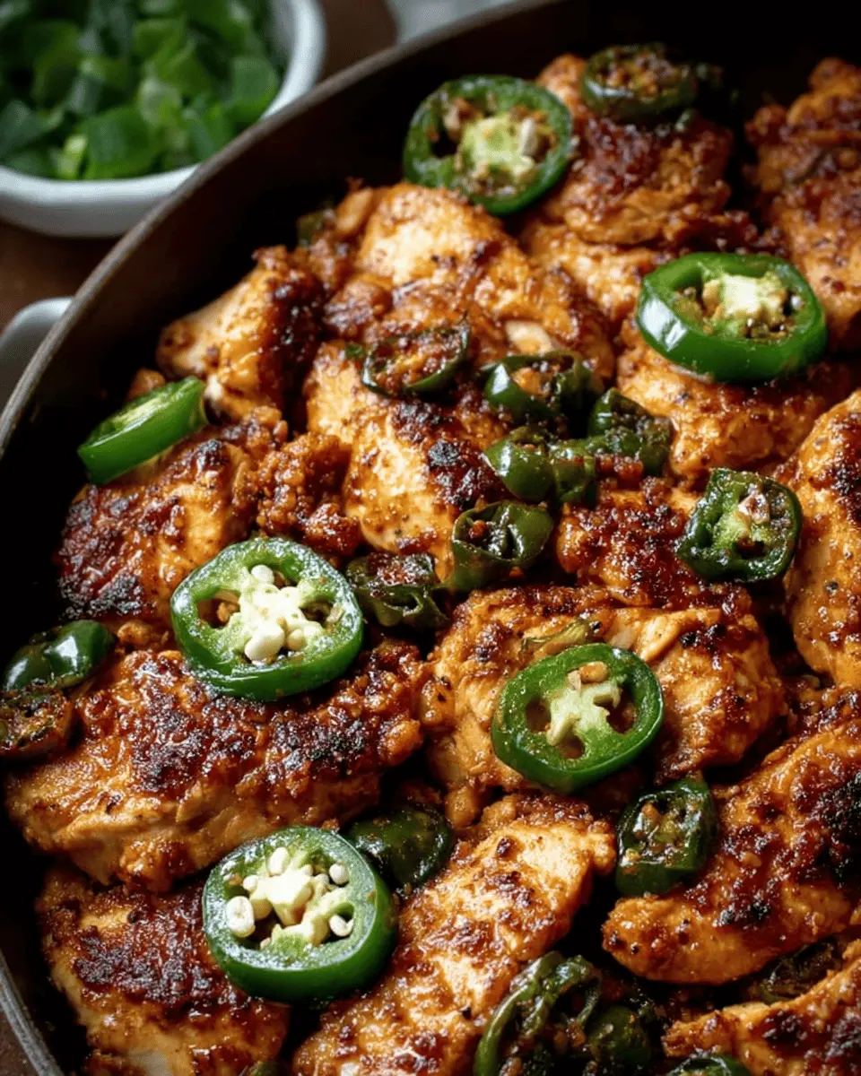 - Layered Bowls: Serve the chicken over a bed of rice, topped with sautéed jalapenos and onions for a visually appealing dish.