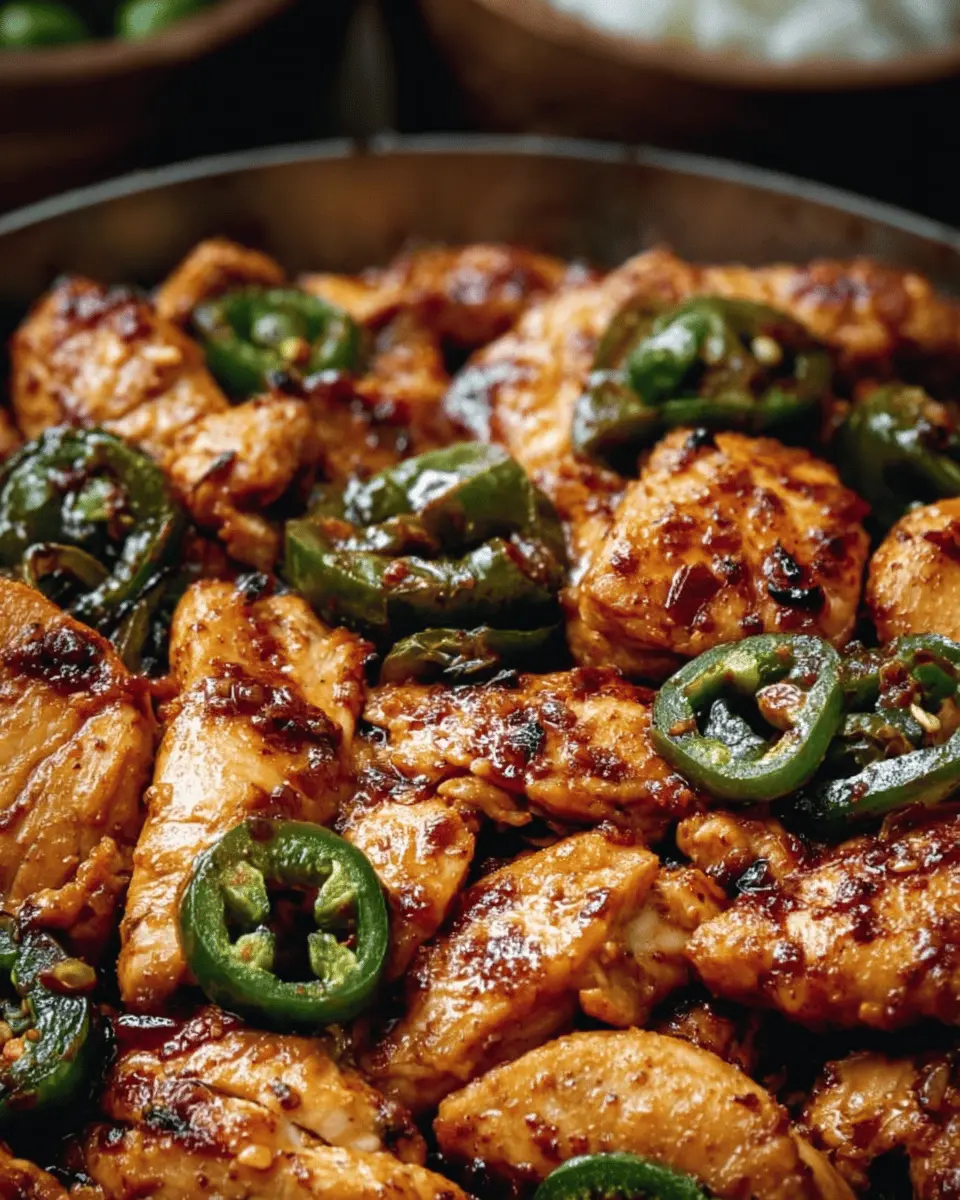 One of the best things about this dish is its flexibility. You can enjoy it on a busy weeknight or dress it up for a small gathering with friends. The combination of tender chicken thighs, sautéed onions, and spicy jalapenos, all drizzled in a sweet and savory sauce, creates a dish that's both comforting and exciting. Plus, it easily pairs with simple sides like steamed rice, making your dinner time both hassle-free and delicious.