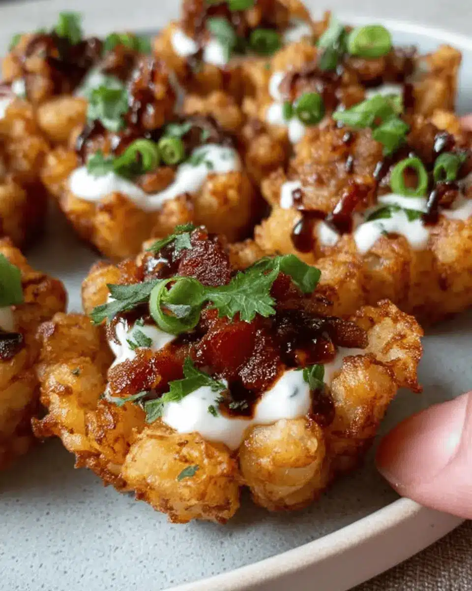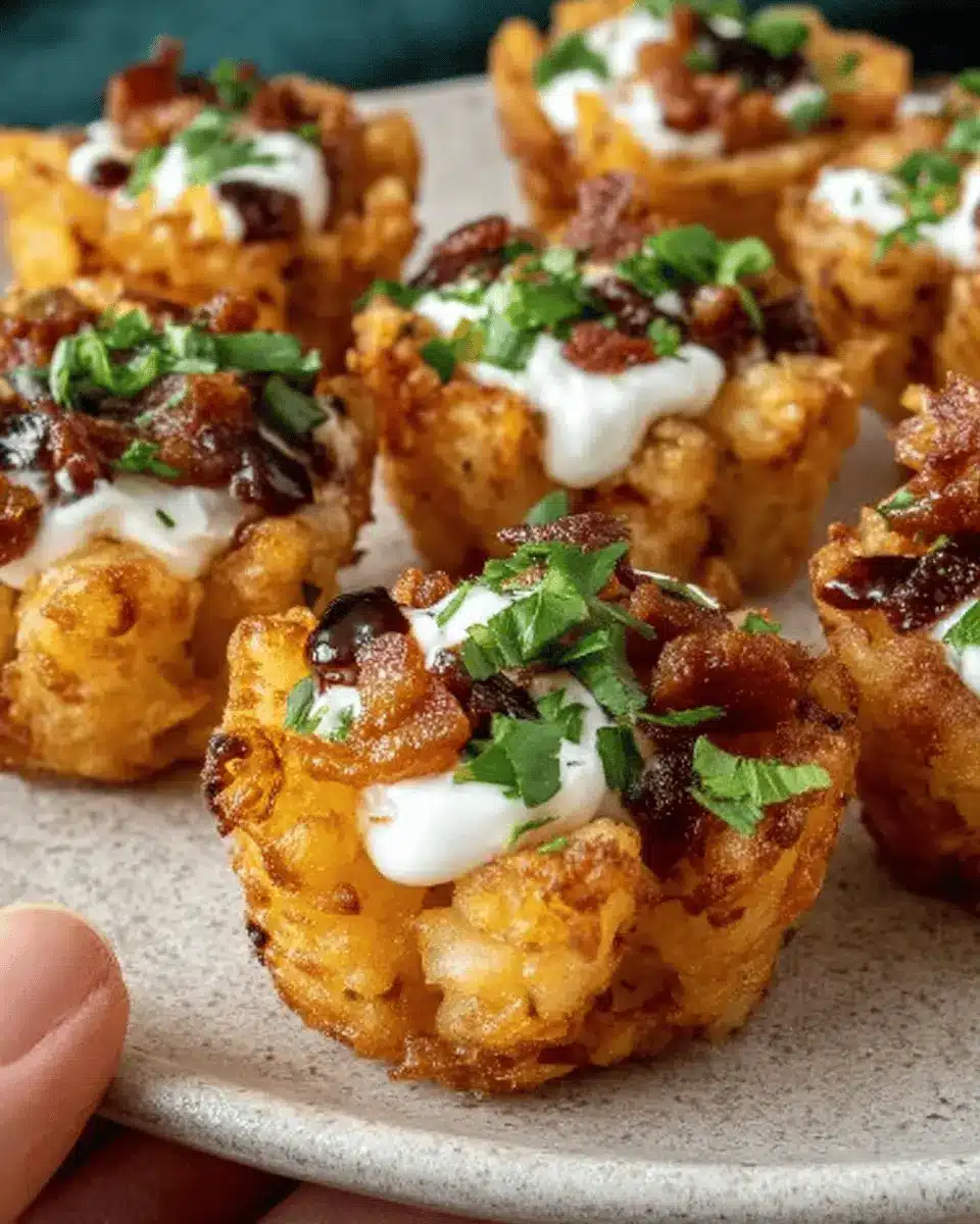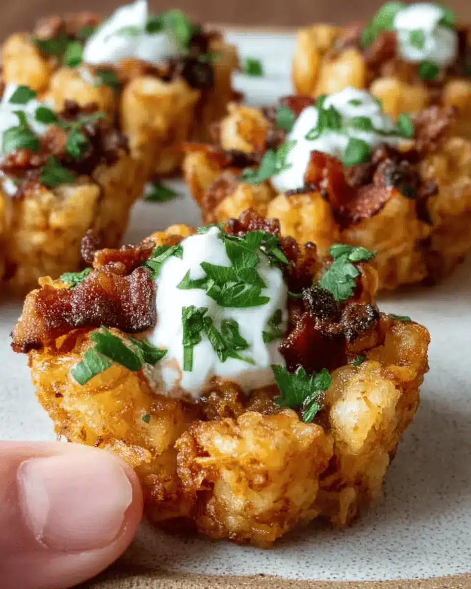 Feel free to customize your loaded tater tot cups with ingredient swaps according to your taste or dietary needs. Instead of traditional bacon, try using turkey bacon for a leaner option. Plant-based cheese can work wonders for a vegan alternative, while diced chicken ham adds a unique flavor twist. And don’t forget the toppings! You can swap sour cream for Greek yogurt or even try a spicy aioli for an unexpected kick.