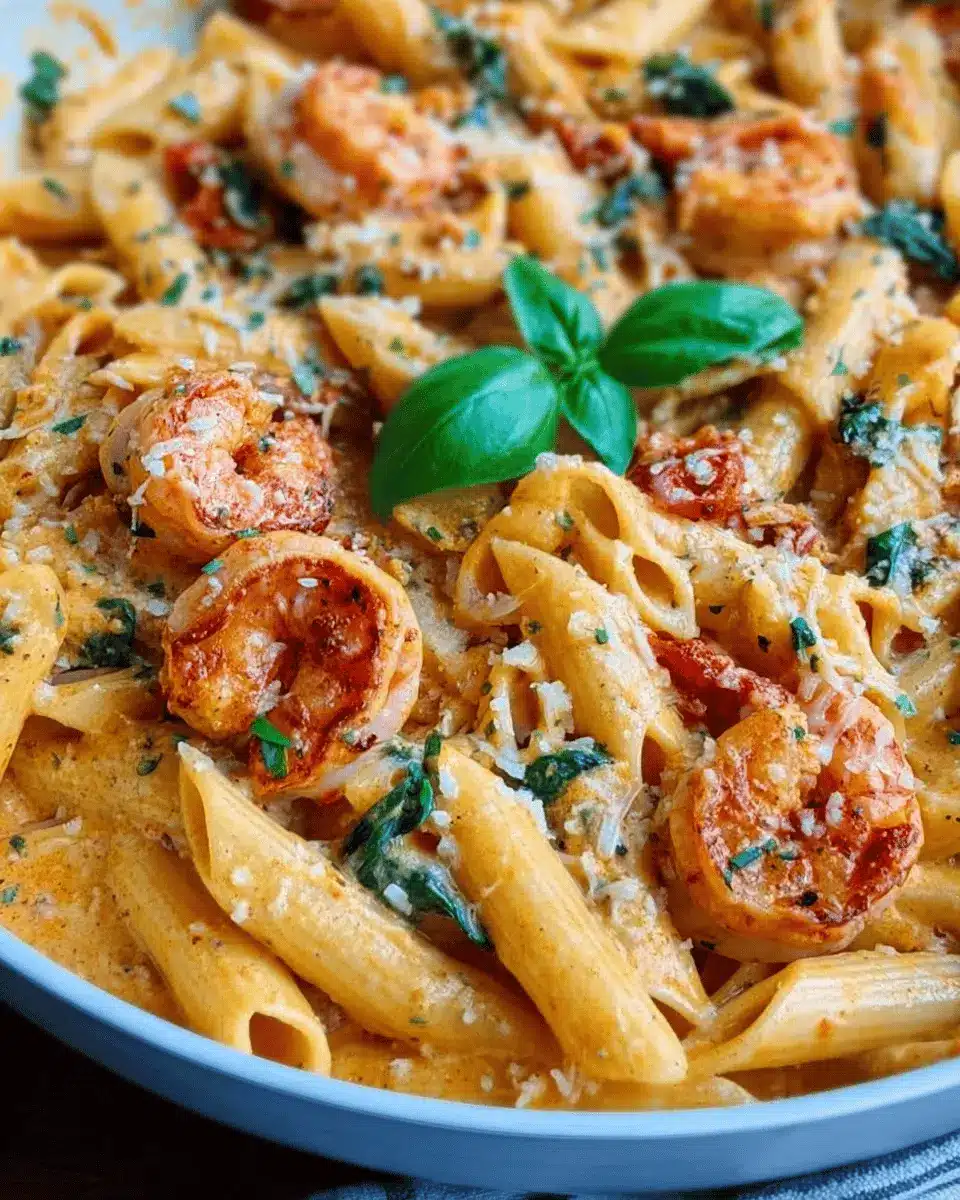 Now comes the best part: bringing it all together! Drain the penne and add it to your creamy sauce, followed by the beautifully cooked shrimp. Gently toss everything until the pasta is coated and the shrimp is evenly distributed. Garnish with freshly chopped basil for that touch of freshness.