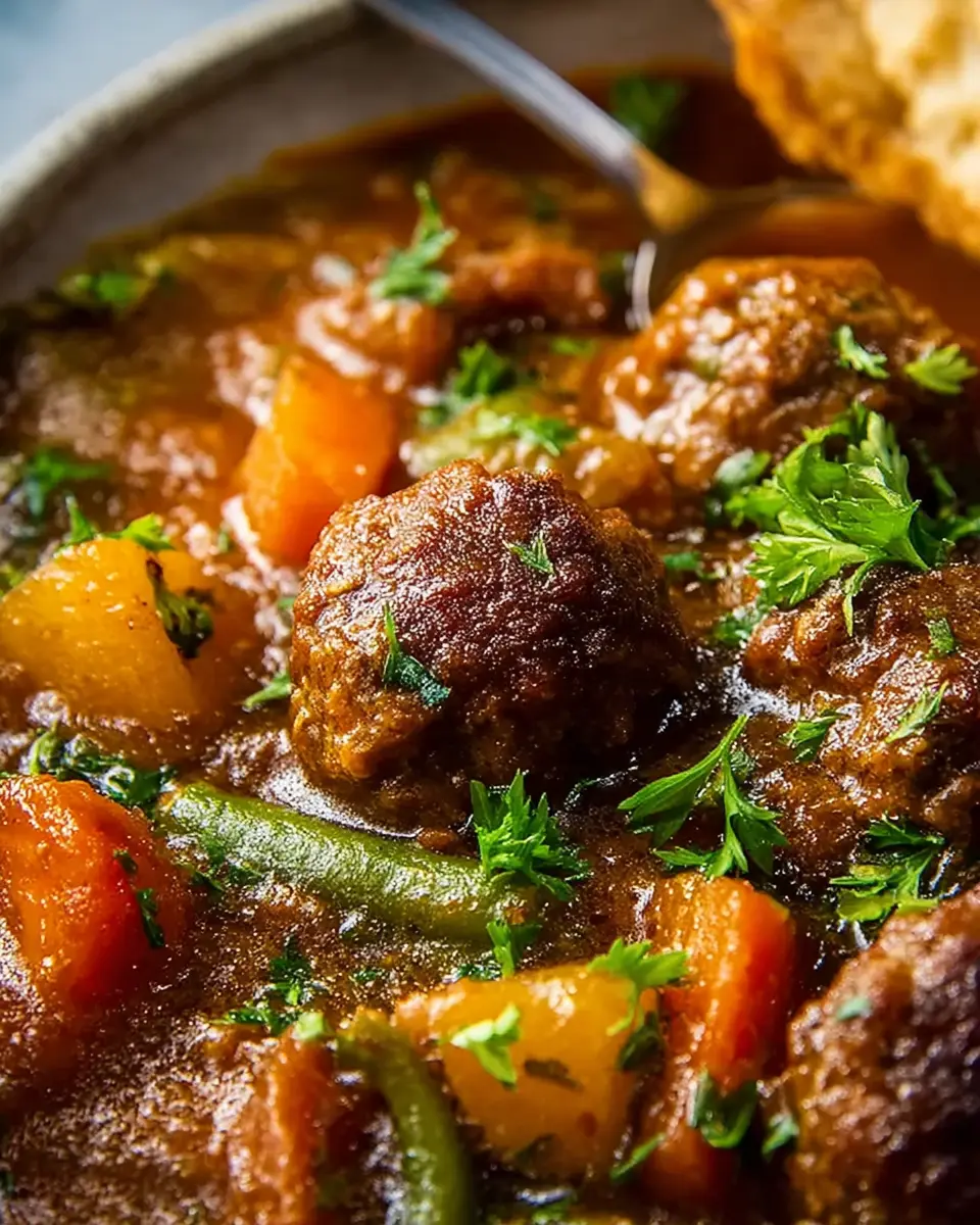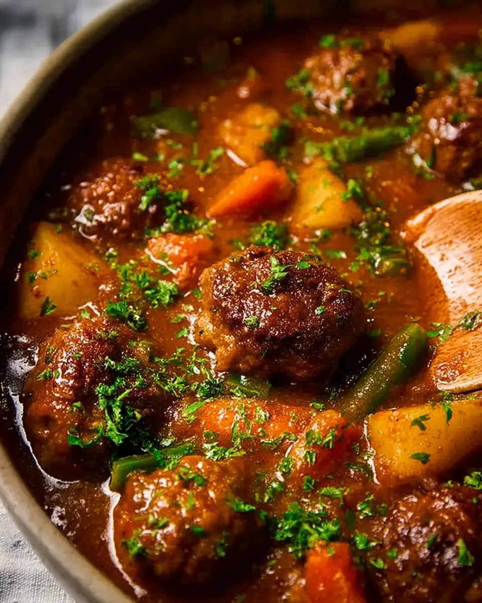 In conclusion, meatball stew is not only a hearty, comforting dish but also a versatile one that can easily be customized with your favorite ingredients. Whether served with crusty bread or buttery noodles, it’s sure to impress. So gather your friends or family, and enjoy this satisfying meal together!
