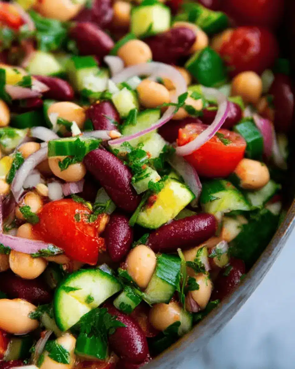 Absolutely! Mediterranean Bean Salad tastes even better after it has had some time to marinate. Preparing it a few hours in advance—or even the night before—allows the flavors to meld beautifully. Just cover it and store it in the refrigerator. When you’re ready to serve, give it a quick stir and adjust seasoning if needed.