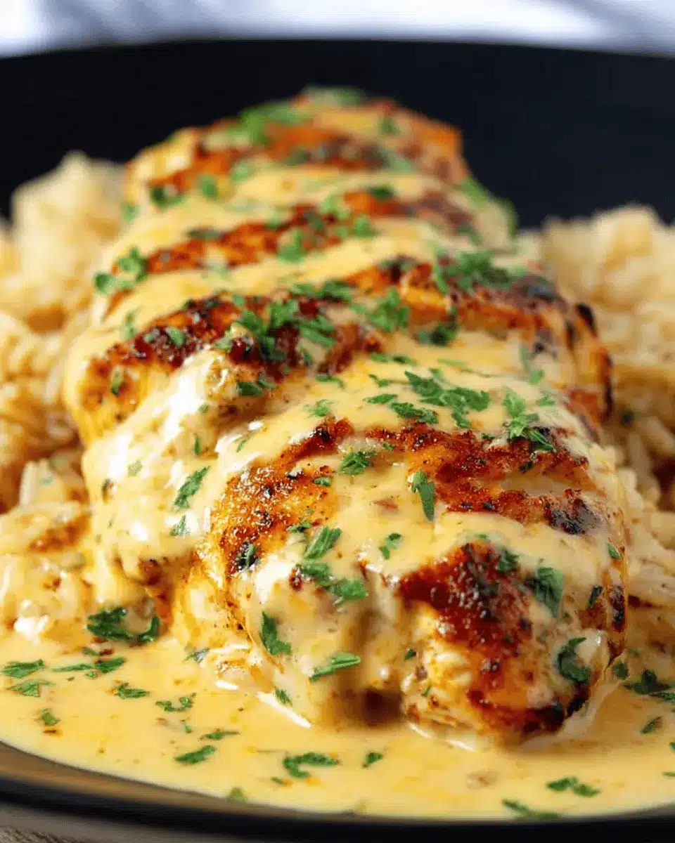 Now comes the fun part! Once your chicken is grilled to perfection, plate it up and drizzle that rich cheese sauce generously over the top. The heat of the chicken will help keep the sauce warm as it envelops each piece beautifully.