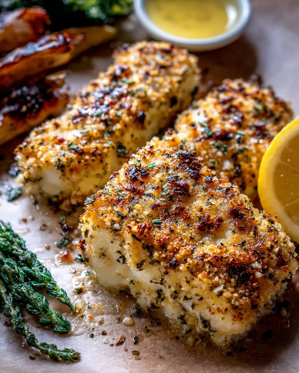 Enjoy your delicious Parmesan Garlic Butter Crusted Halibut with a side of roasted vegetables or a fresh salad for a well-rounded meal. Bon appétit!