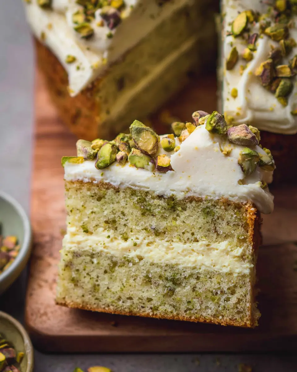 Storing your leftover pistachio cake is simple! Wrap the cake tightly in plastic wrap or store it in an airtight container to keep it fresh. You can keep it at room temperature for up to three days, but if you want to extend its shelf life, consider refrigerating it, where it can last for about a week. If you prefer to freeze it, slice the cake and wrap each slice well. It can stay in the freezer for up to three months.