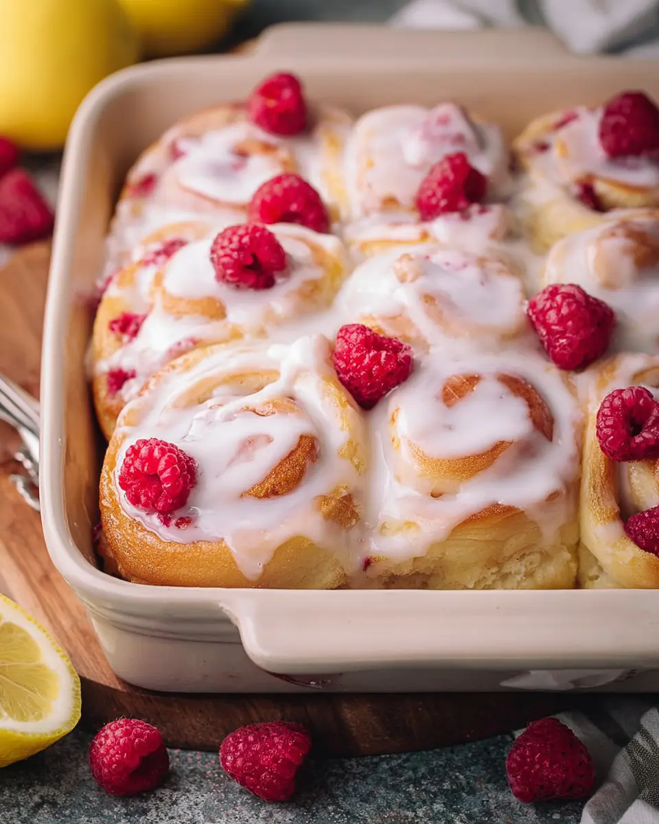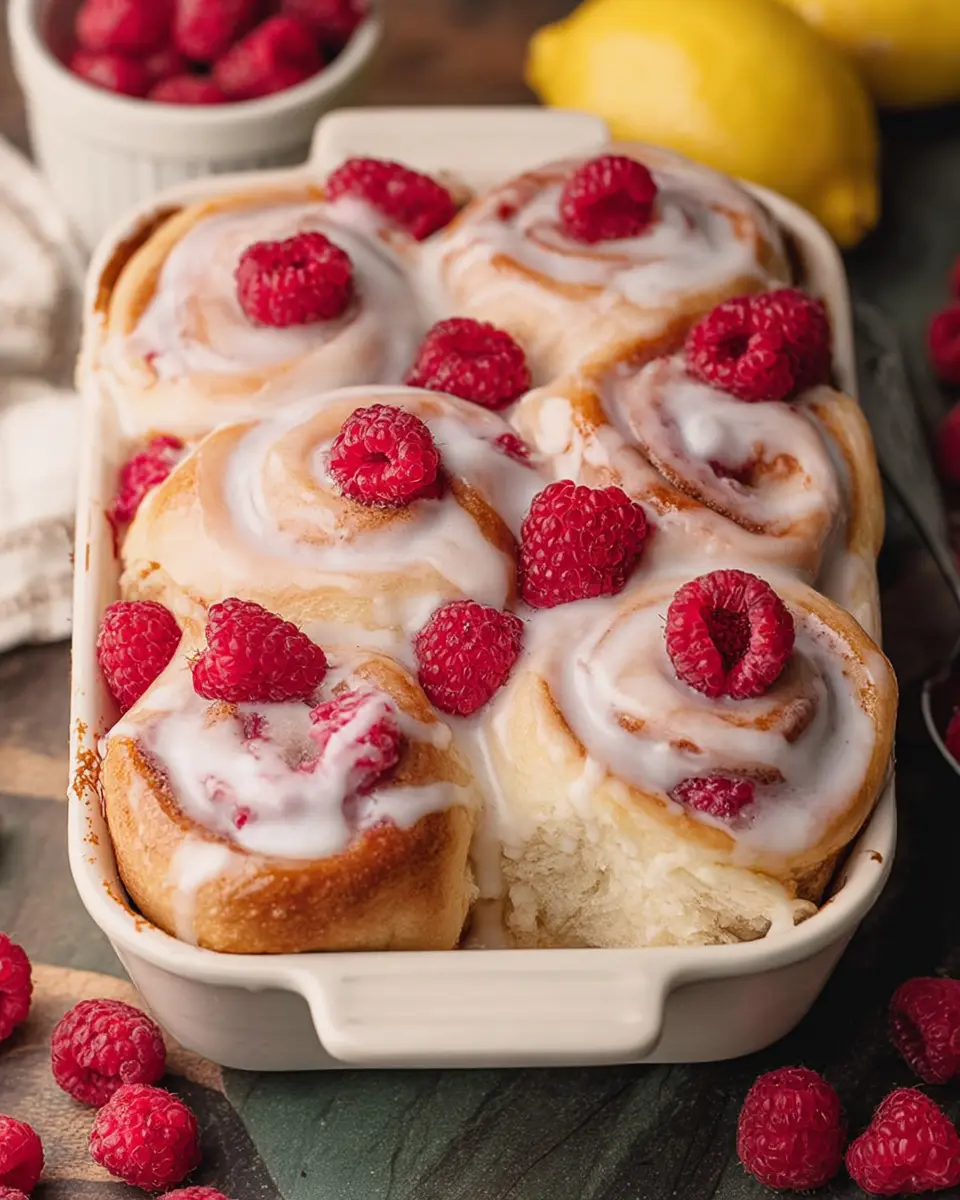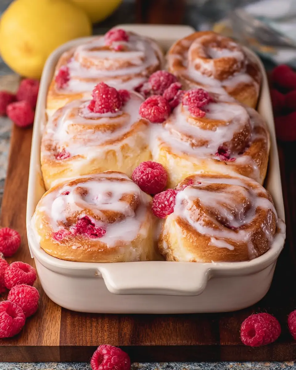 These sweet rolls make a show-stopping addition to any brunch spread. Serve them alongside fluffy scrambled eggs and turkey bacon for a delicious balance of flavors. Alternatively, they can shine on their own as a sweet dessert after dinner, especially when served warm. Sprinkle some powdered sugar on top for an extra touch, or fresh mint for a pop of color. Your guests will love the blend of raspberry and lemon, making them a hit for any occasion!
