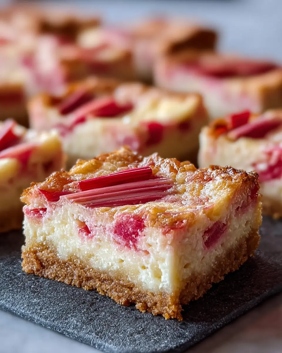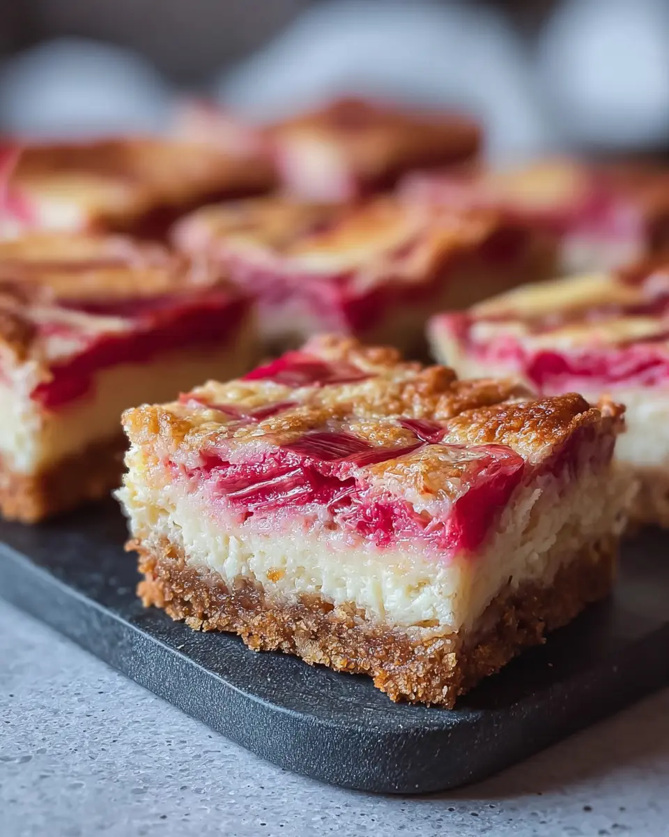 Chill Time: The key to clean, perfect slices is letting your rhubarb cheesecake bars cool completely before cutting. Patience pays off!