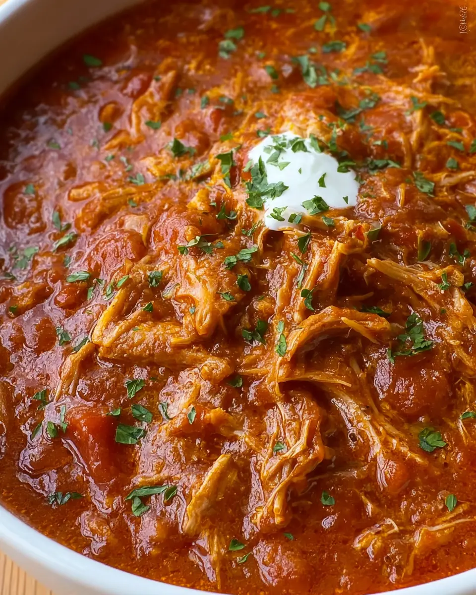 Ladle your slow cooker pork roast chili into bowls, garnishing with freshly chopped cilantro for the perfect finishing touch. This hearty dish pairs wonderfully with cornbread or tortilla chips.
