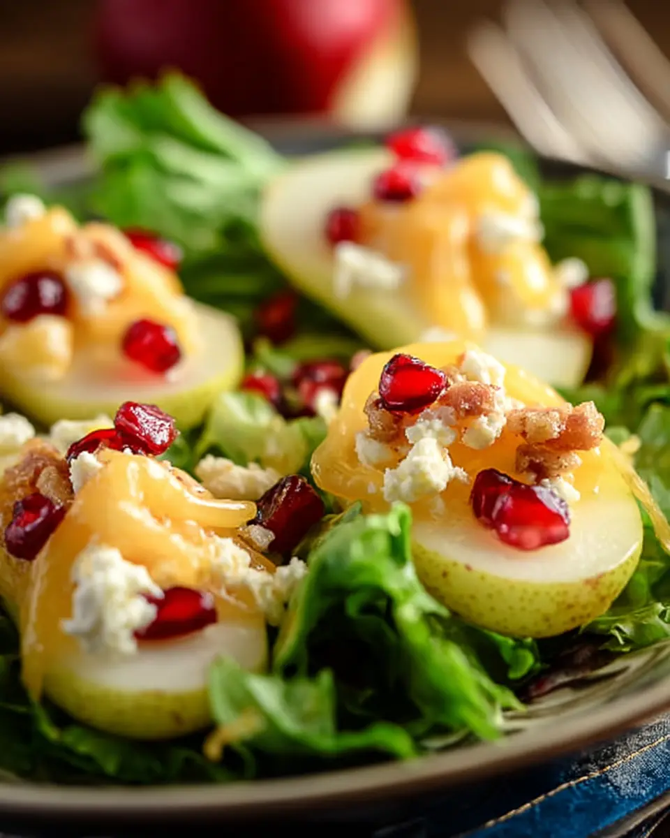 For a hearty option, swap the traditional toppings with chicken ham. This lean protein will add a satisfying richness without overwhelming the lightness of the salad. Cut the chicken ham into thin slices and layer it on top of the pears for a gorgeous presentation. This variation not only enhances the flavor but also makes the salad a filling meal option.