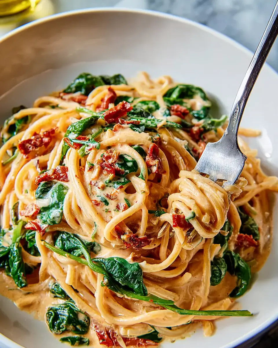 Cooking at home has never been easier or more satisfying, making homemade pasta dishes the new fast food. Why settle for takeout when you can whip up a delicious meal in just 20 minutes? This Spaghetti & Spinach with Sun-Dried Tomato Cream Sauce is all about quick, flavorful cooking, using pantry staples to create something extraordinary. With only a handful of ingredients, you'll find that every bite bursts with rich flavors that will make you forget about that frozen dinner in your freezer.