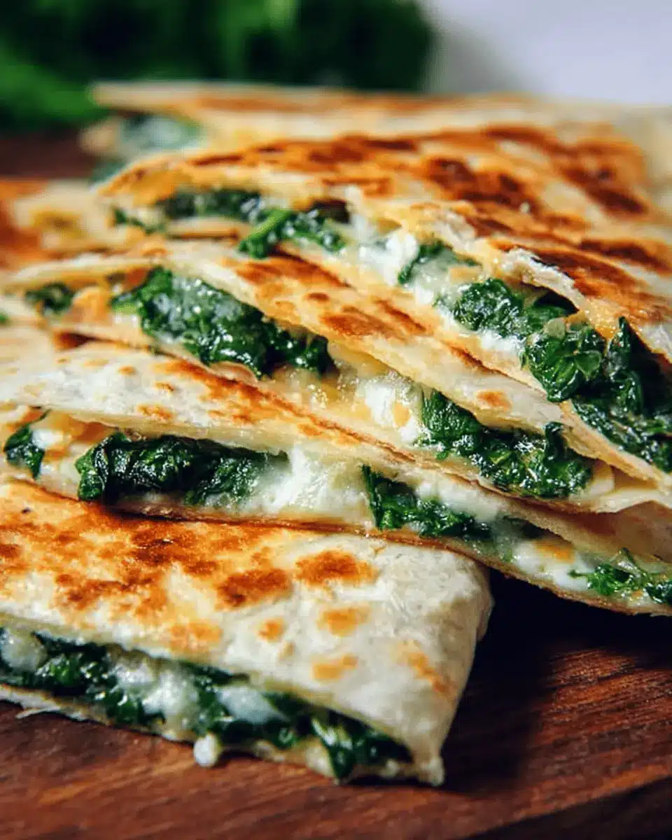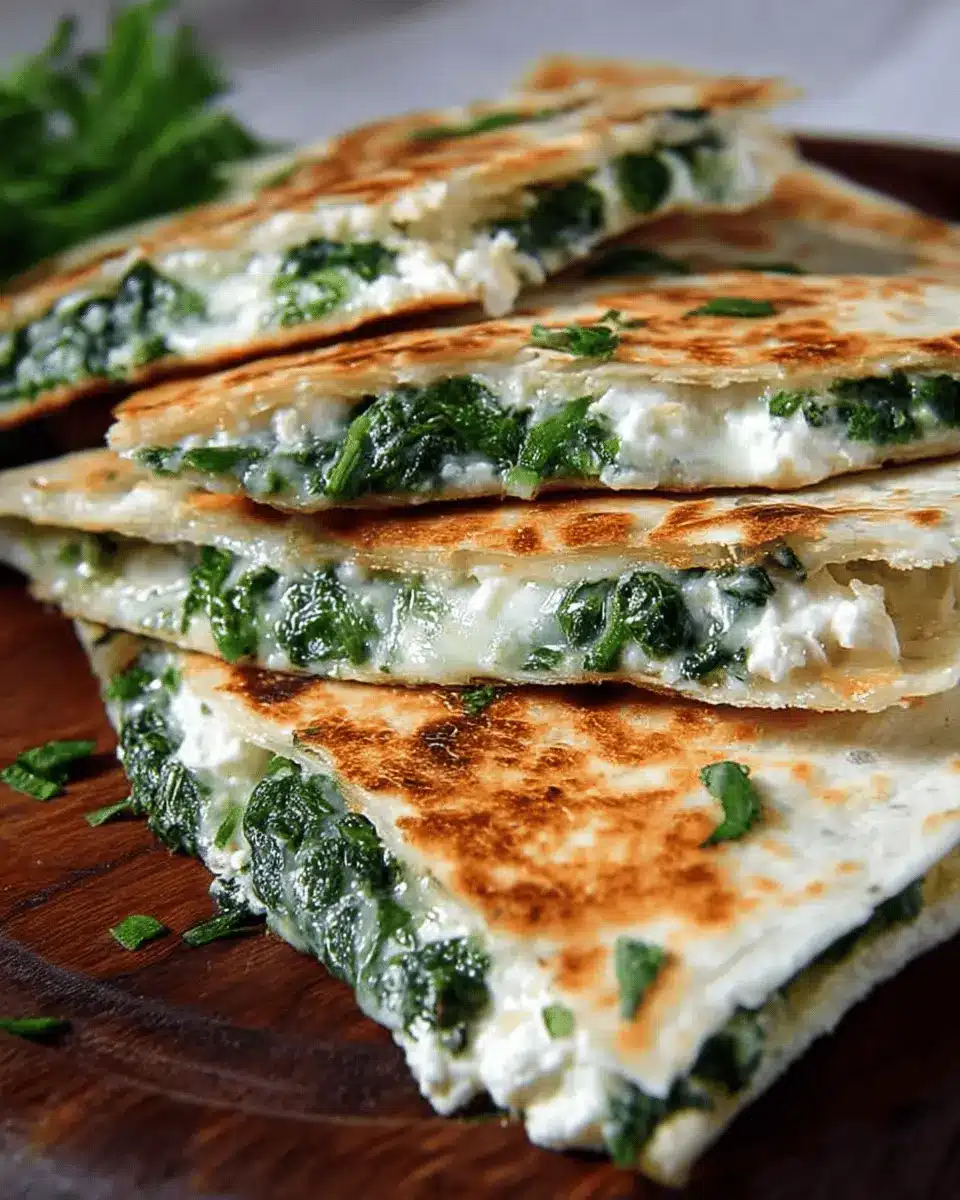 Once fully cooked, remove the quesadilla from the heat and let it sit for a minute. This helps the cheese set slightly, making cutting easier. Slice it into wedges and serve warm. You can add a side of Greek yogurt or your favorite salsa for dipping. Enjoy your Spinach and Feta Quesadillas hot, and you’ll soon find this dish becoming a beloved staple in your kitchen!
