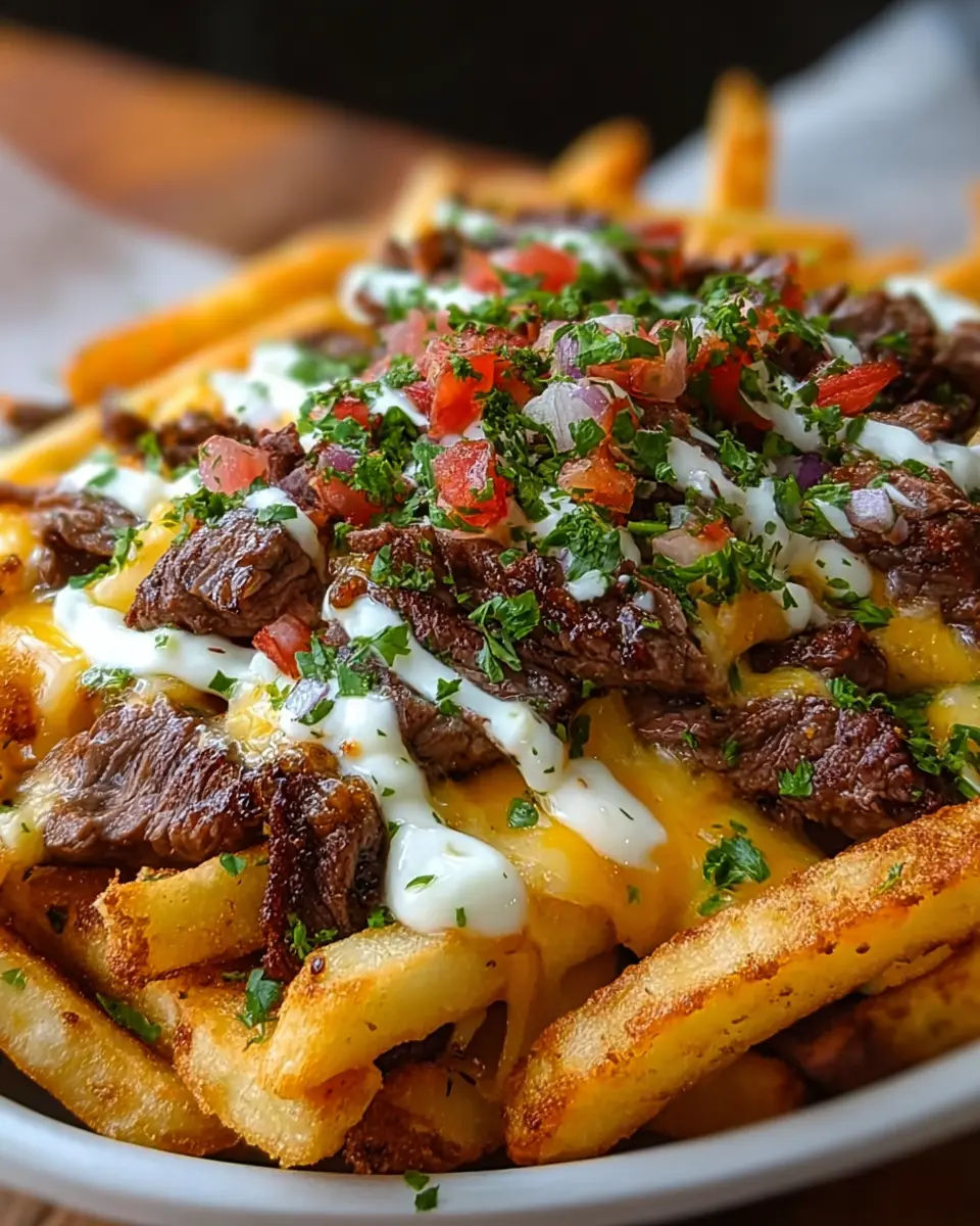 - Serve Warm: Enjoy your Steak & Cheese Loaded Fries immediately while still hot and cheesy!