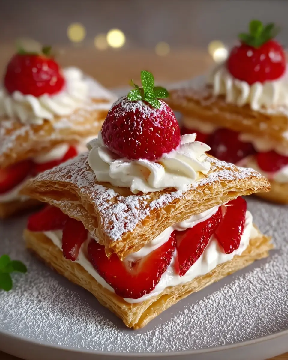 While strawberries are the star of the show in these delightful pastries, don’t shy away from experimenting with other fruits! Consider layering in blueberries, raspberries, or even thin slices of kiwi for a tangy twist. The sweetness of the whipped cream pairs beautifully with these juicy alternatives, creating a colorful and flavorful medley. For those looking for a tropical flair, mango or pineapple can add a refreshing sweetness. Try mixing and matching fruits for a delightful twist every time!