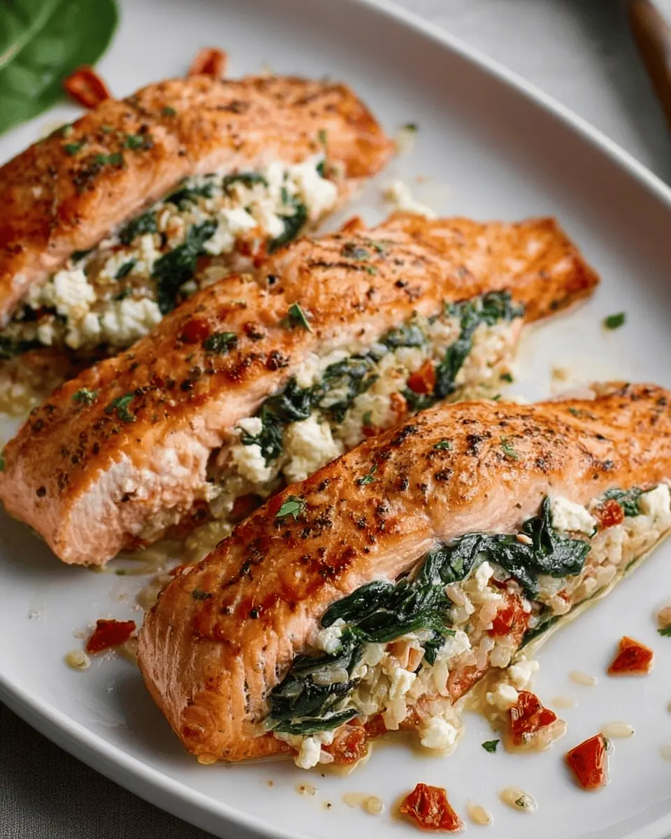 You might be wondering why to opt for stuffed salmon when there are countless other options out there. Here’s the scoop: salmon is a nutritional powerhouse rich in omega-3 fatty acids, which support heart health and contribute to overall well-being. Pairing it with nutrient-dense ingredients like spinach and feta creates a meal that’s both delicious and wholesome.