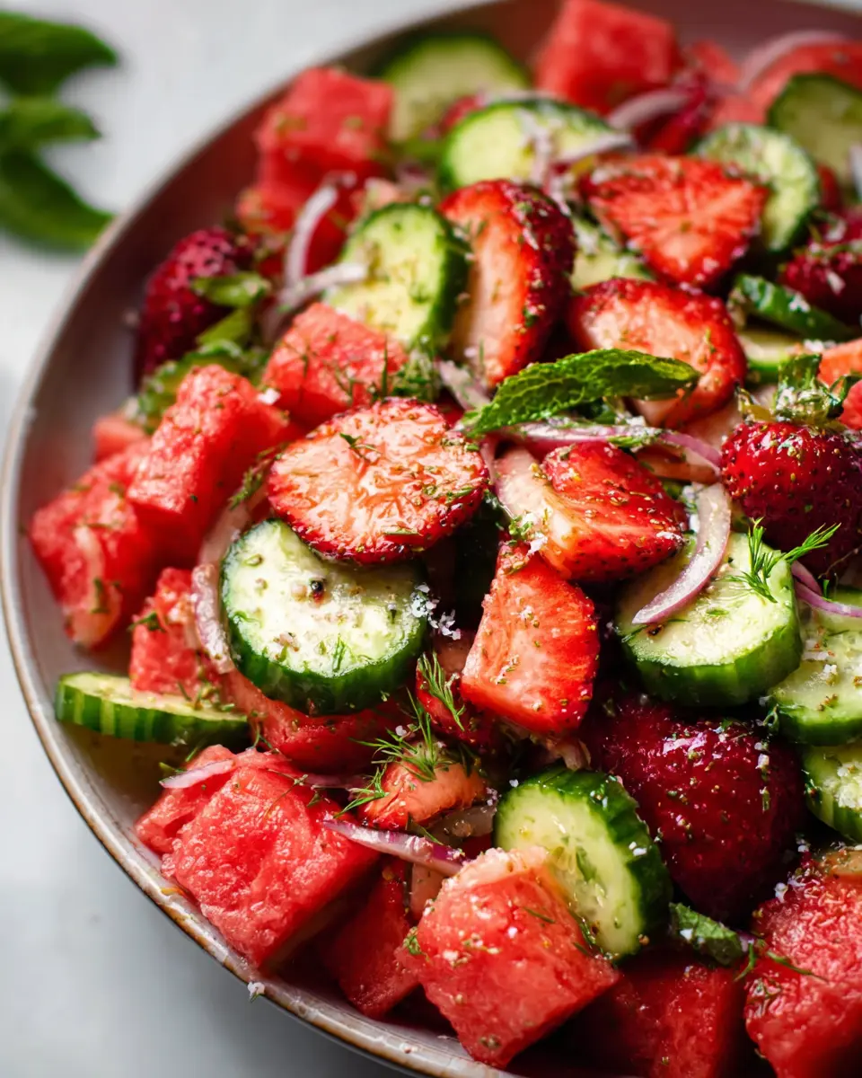 Watermelon Strawberry Cucumber Salad